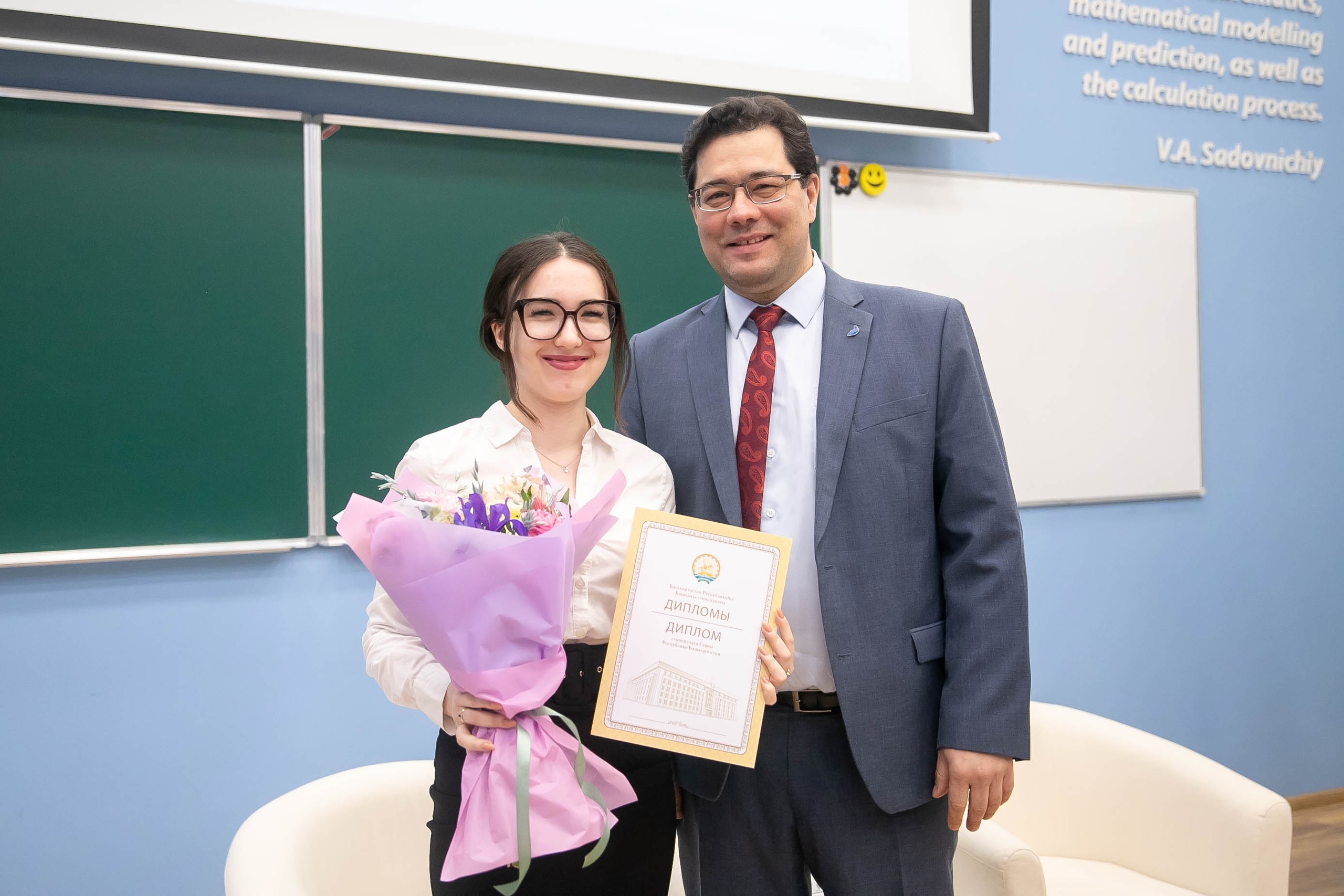 В аудитории имени почетного профессора БГПУ имени М. Акмуллы В.А. Садовничего состоялась III Научно-практическая конференция «Перспективные направления развития современного образования и науки». Основные направления работы конференции: естественные науки; филологические науки; социально-гуманитарные науки; «Слово – молодым исследователям». Спикеры рассказали о направлениях научных исследований в России и мире, о развитии научной инфраструктуры в  Акмуллинском университете. В рамках конференции прошли награждения студентов и преподавателей. Студентке 3 курса направления 44.03.05 «Педагогическое образование», направленность (профиль) «Английский язык и французский язык» Саттаровой Амиле Венеровне вручен диплом стипендиата Главы Республики Башкортостан. Благодарственное письмо за вклад в развитие научно-исследовательской деятельности и популяризацию студенческой науки в университете получили члены молодежного научного общества ИФОМК. За активную работу в составе редакционной коллегии научного издания «Педагогический журнал Башкортостана» благодарственным письмом награждена доцент кафедры английского языка Гумерова Наиля Жановна.