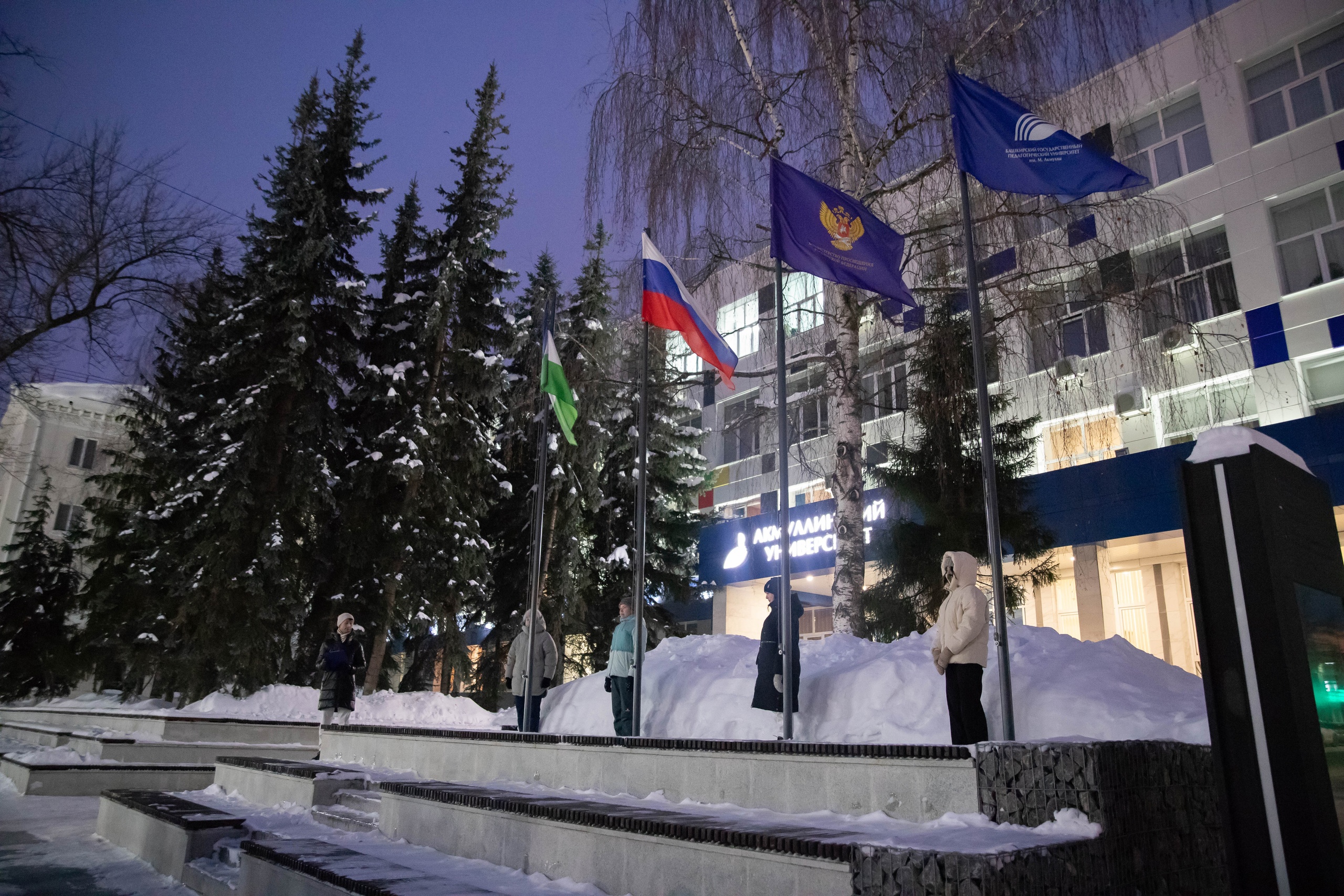 19 февраля в БГПУ имени Акмуллы состоялась традиционная торжественная линейка, посвященная церемонии поднятия Государственного флага Российской Федерации, флага Республики Башкортостан, Министерства просвещения России и Акмуллинского университета. В ней приняли участие студенты и преподаватели Института филологического образования и межкультурных коммуникаций.