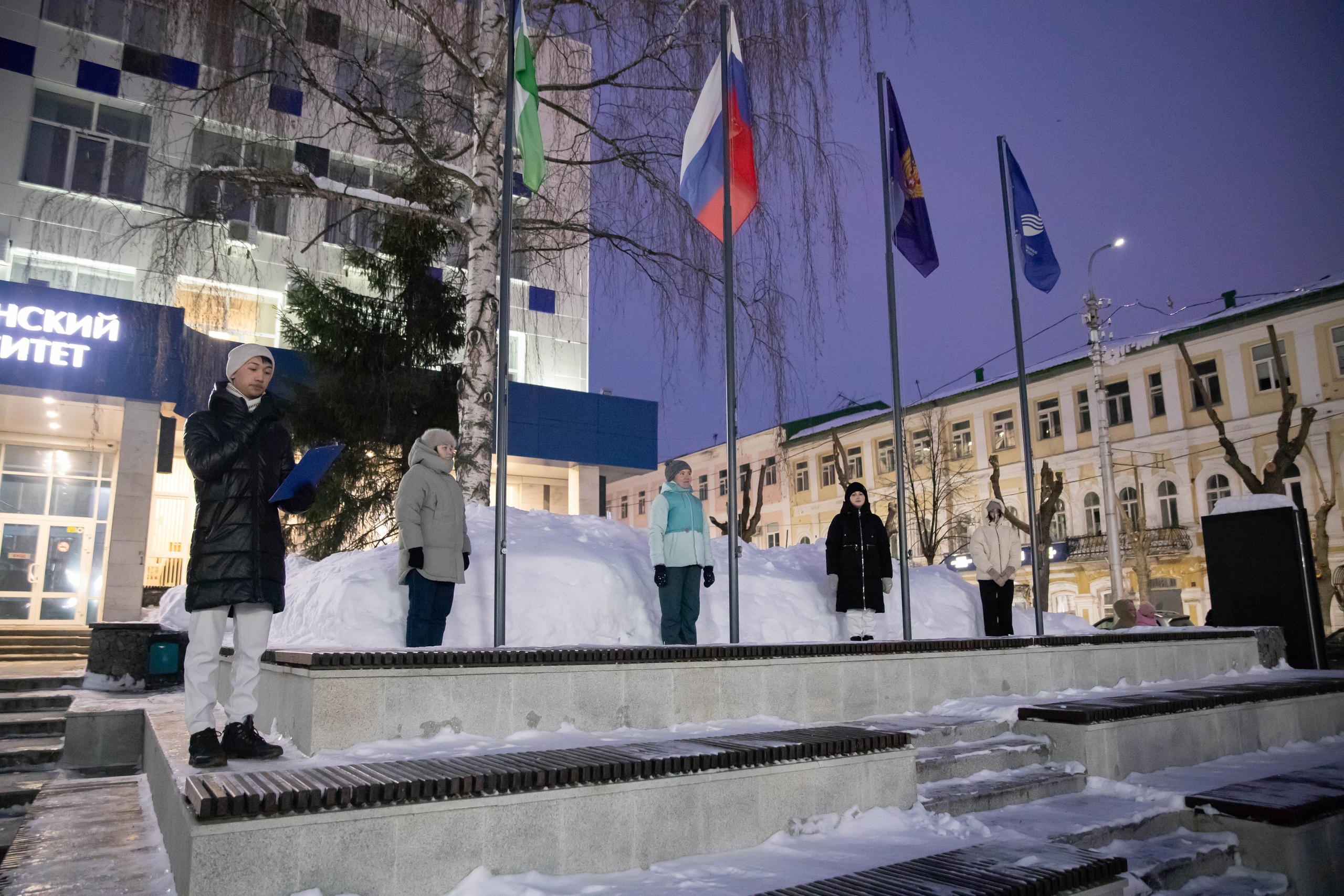 Почетное право поднять флаги было предоставлено стипендиатам повышенной государственной академической стипендии за достижения в общественной деятельности: