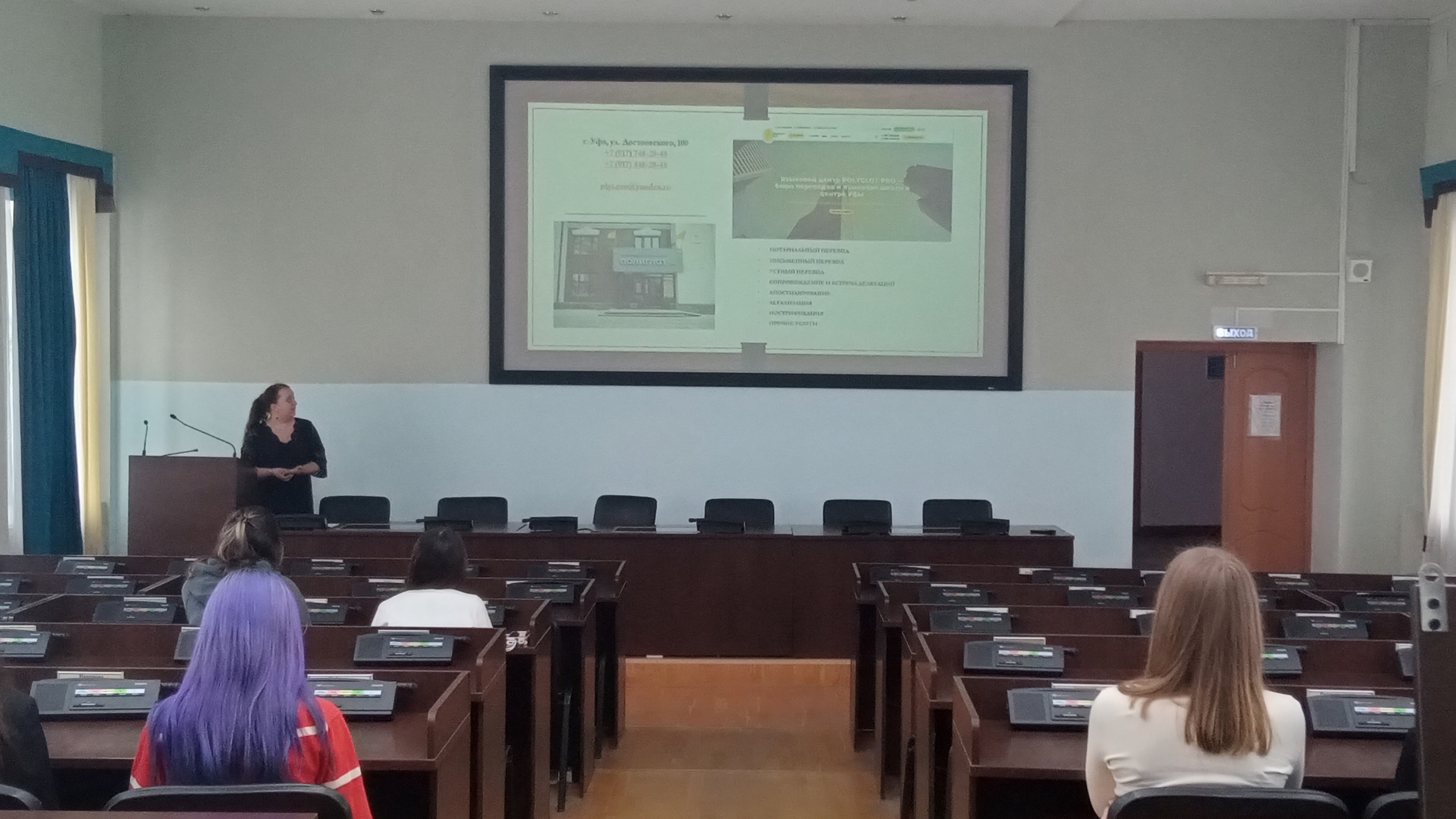09 апреля 2024 года в аудитории 409 учебного корпуса № 3 состоялась встреча студентов направления 45.03.02 Лингвистика, направленность (профиль) «Перевод и переводоведение» с руководителем языковой школы «Полиглот-Про», к.филол.н., доцентом Еленой Анатольевной Васиной.