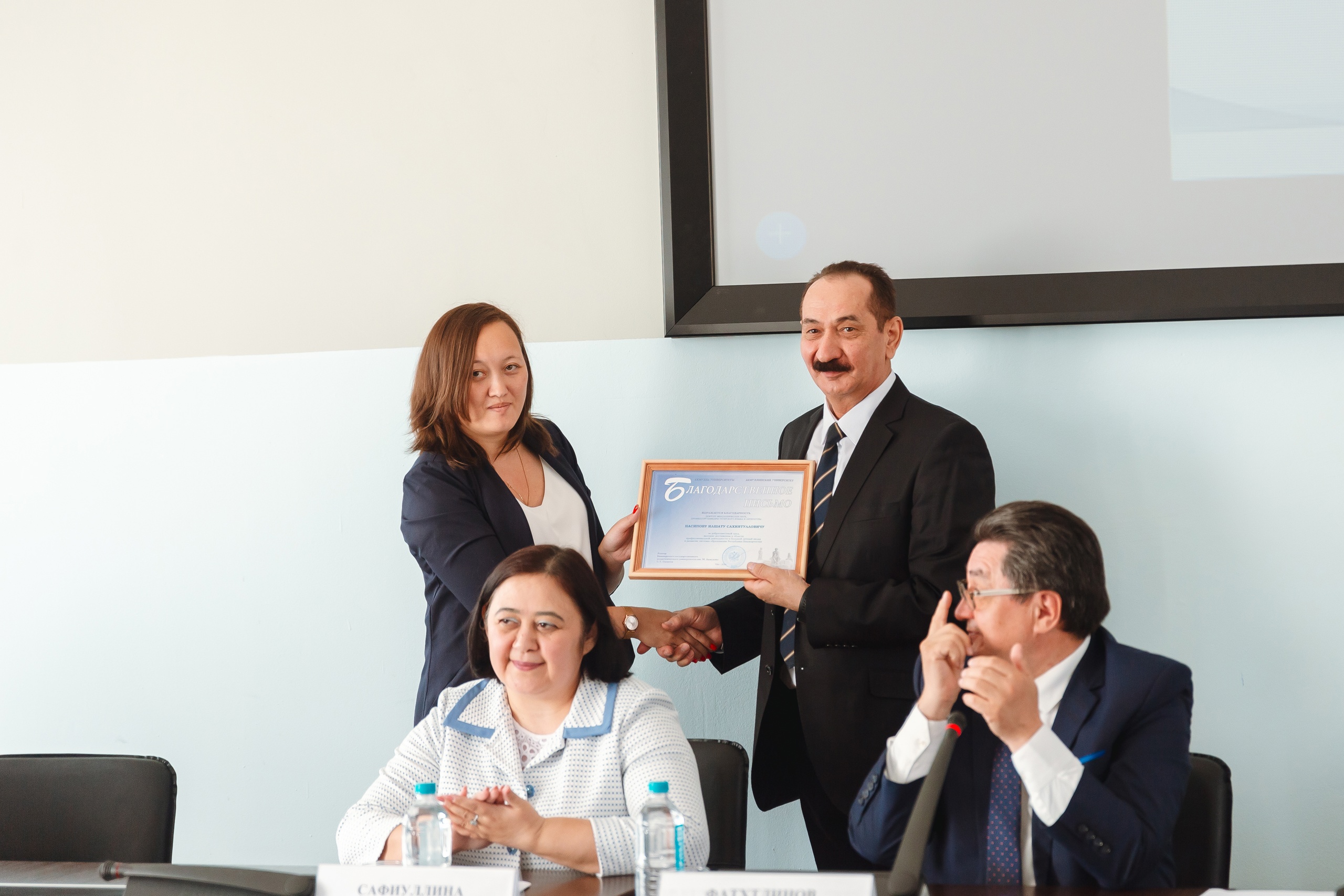 Благодарность за доблестный труд, высокие достижения в профессиональной деятельности и большой вклад в развитие системы образования Башкортостана от руководства Акмуллинского университета Илшату Сахиятулловичу вручила проректор по научно-исследовательской работе Светлана Гареева.