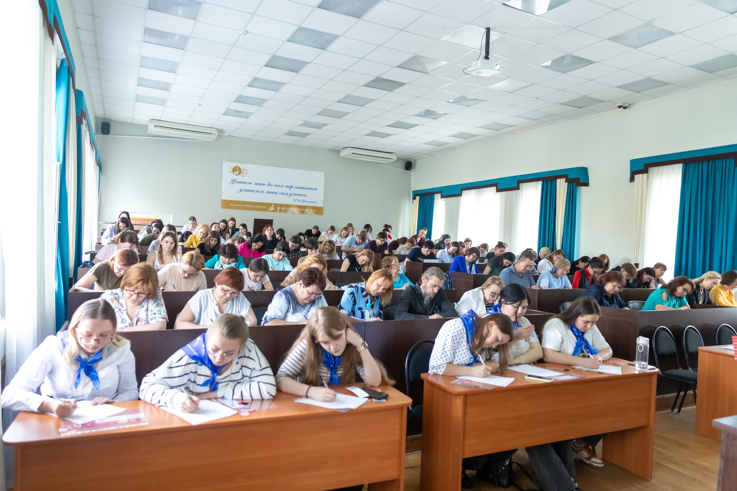 Прошел Тотальный диктант во многих странах, так, например, участником акции стала Газпром школа Кыргызстан, где располагается Центр открытого образования и изучения русского языка, открытый при участии специалистов Акмуллинского университета.