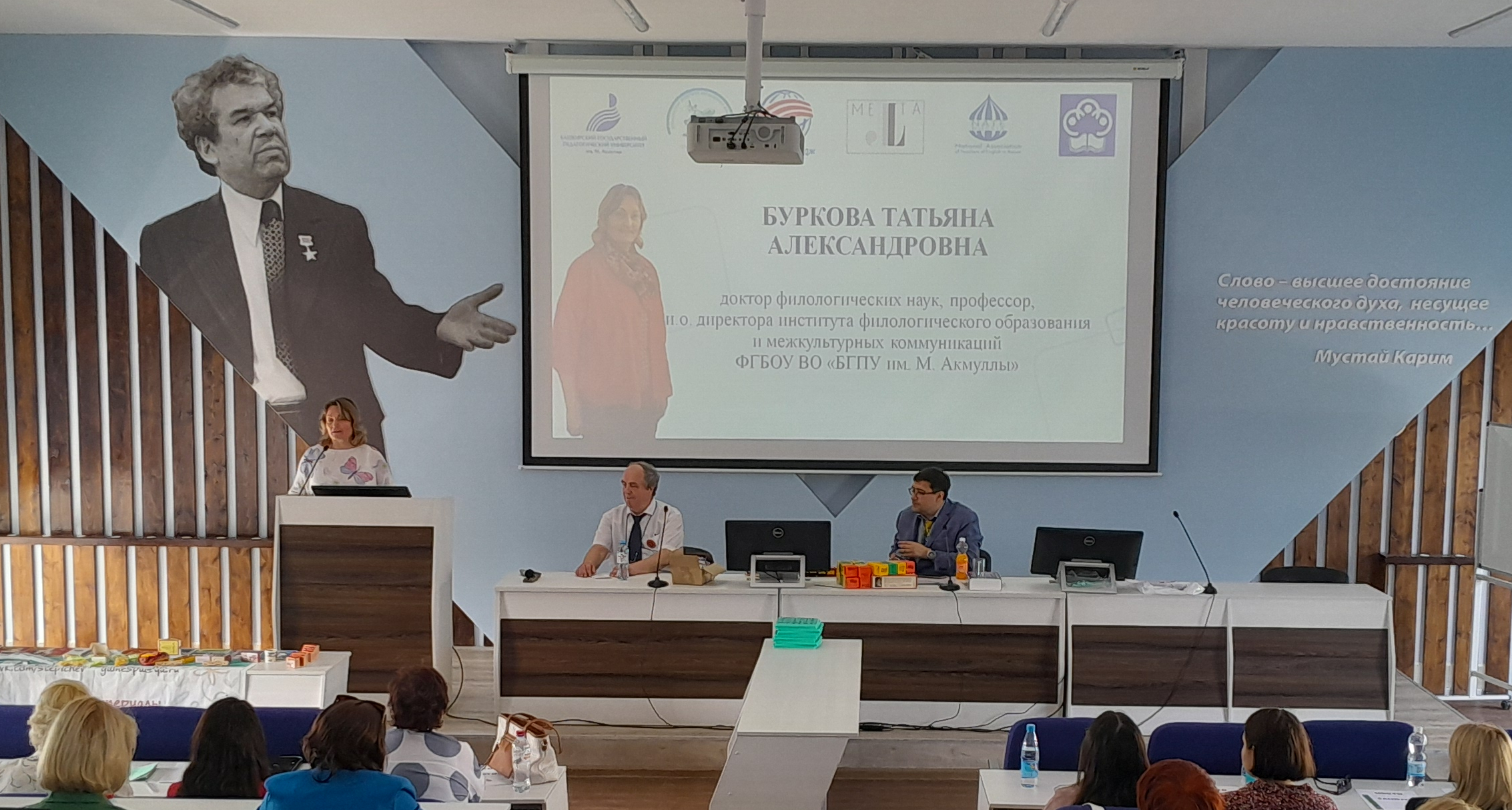 В начале встречи модератор, доцент кафедры иностранных языков Вячеслав Швайко рассказал о многолетнем сотрудничестве кафедры иностранных языков Акмуллинского университета с П.А. Степичевым. Доктор филологических наук, и.о. директора ИФОМК Татьяна Буркова подчеркнула в своем выступлении важность использования игровых методик при обучении иностранным языкам.