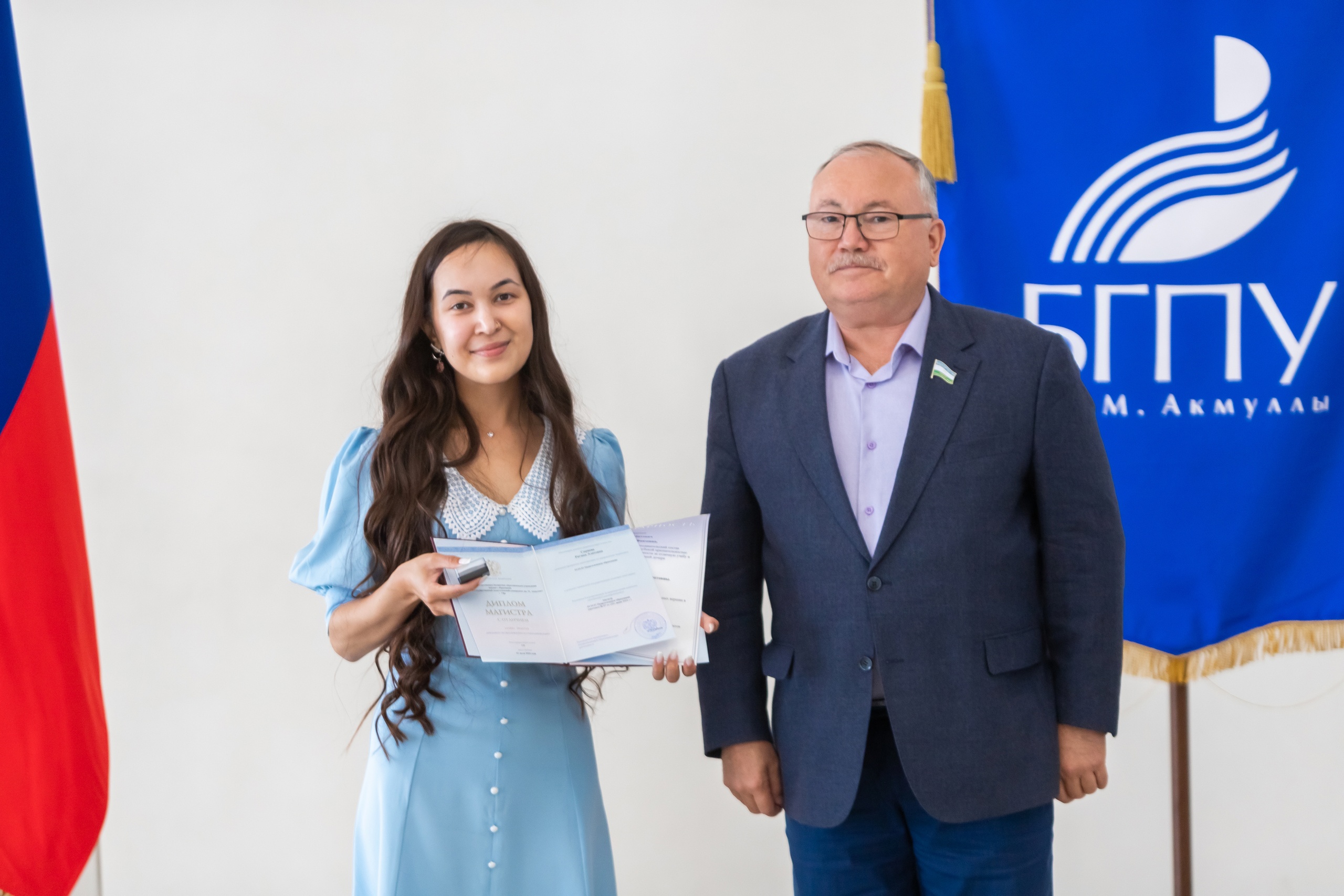 Уважаемые магистры, от всего сердца поздравляем вас с окончанием обучения в Башкирском государственном педагогическом университете им. М. Акмуллы! Желания и стремления вашего поколения определяют будущее страны, облик современного общества, в котором нам предстоит жить. Не бойтесь трудностей, уверенно преодолевайте их и покоряйте новые высоты. Пусть ваши самые смелые планы осуществятся в реальности. Счастья вам, здоровья, благополучия и удачи!