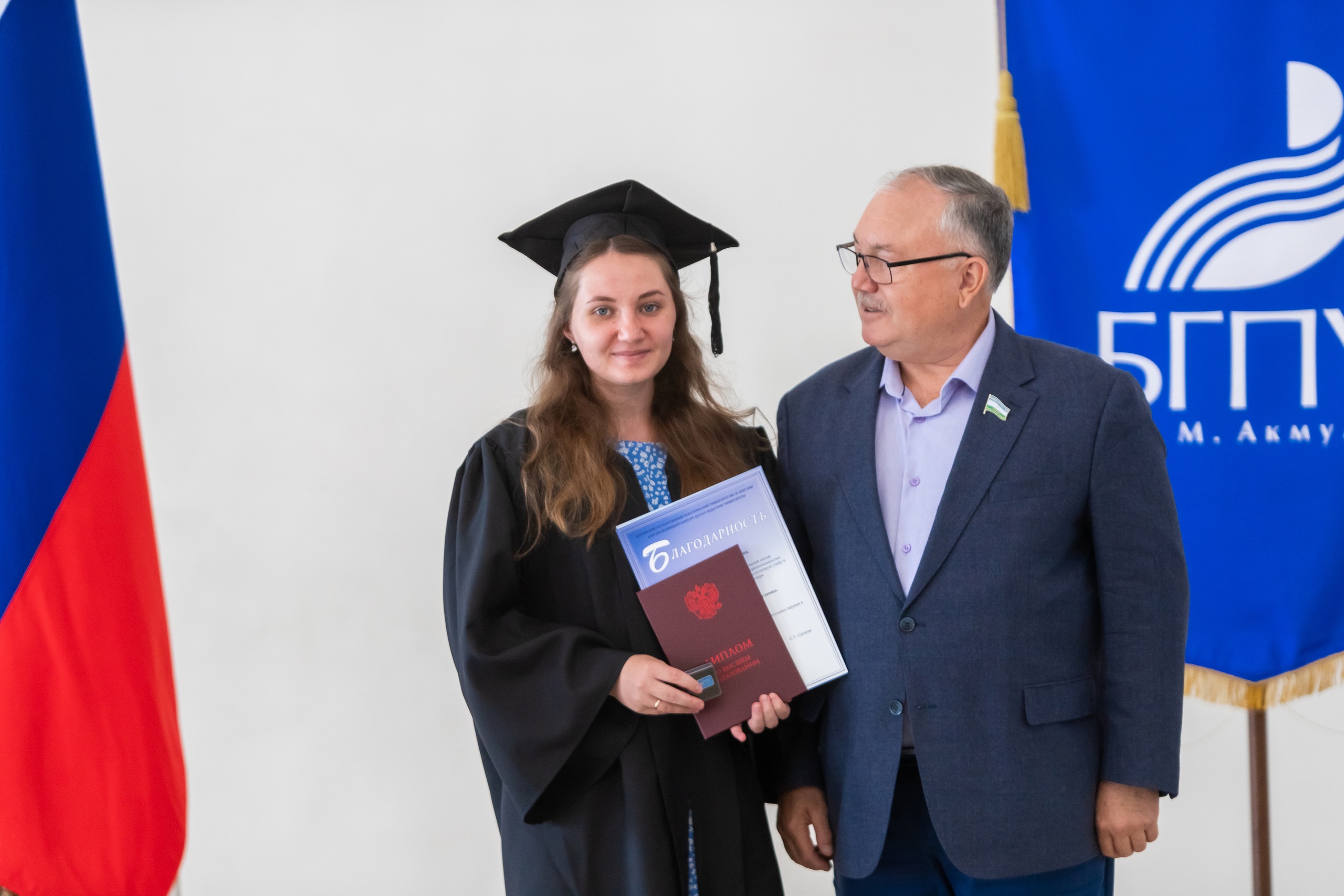 Наилучшие пожелания счастливым обладателям дипломов адресовали и выпускники прошлых лет, которые достойно представляют Акмуллинский университет не только в нашей стране, но и за её пределами. Например, в 2019 году ИФОМК закончила Посол русского языка в мире, специалист Россотрудничества в Армении Айгуль Шамсутдинова, город Ереван. В 2011 году получил диплом специалиста востребованный переводчик-синхронист и актер озвучивания Булат Данилов, который  переводил на русский язык предвыборные дебаты Дональда Трампа и Джо Байдена для медиахолдинга РБК.