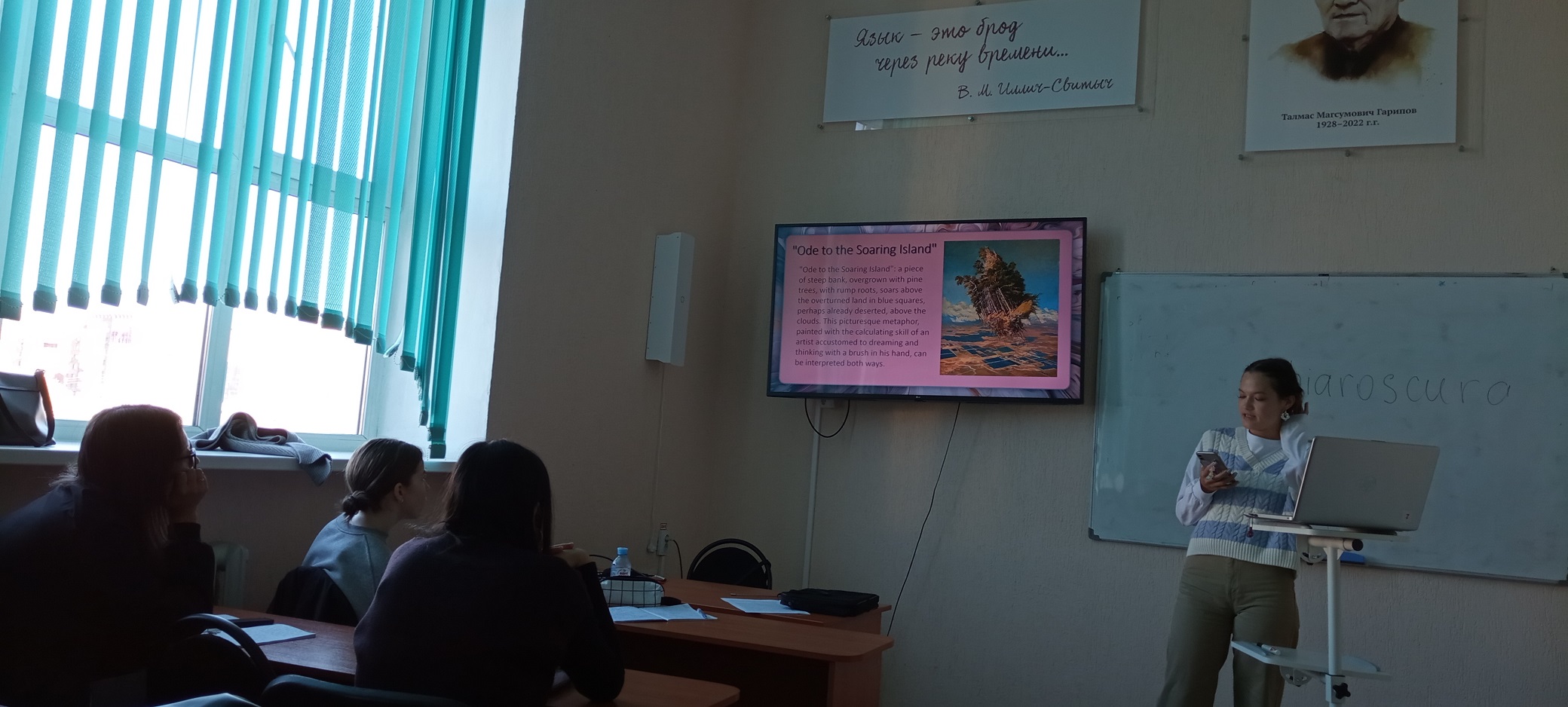 Выбрав наиболее понравившиеся работы, студенты после экскурсии подготовили презентации на тему творчества авторов картин на английском языке и представили их на занятии.
