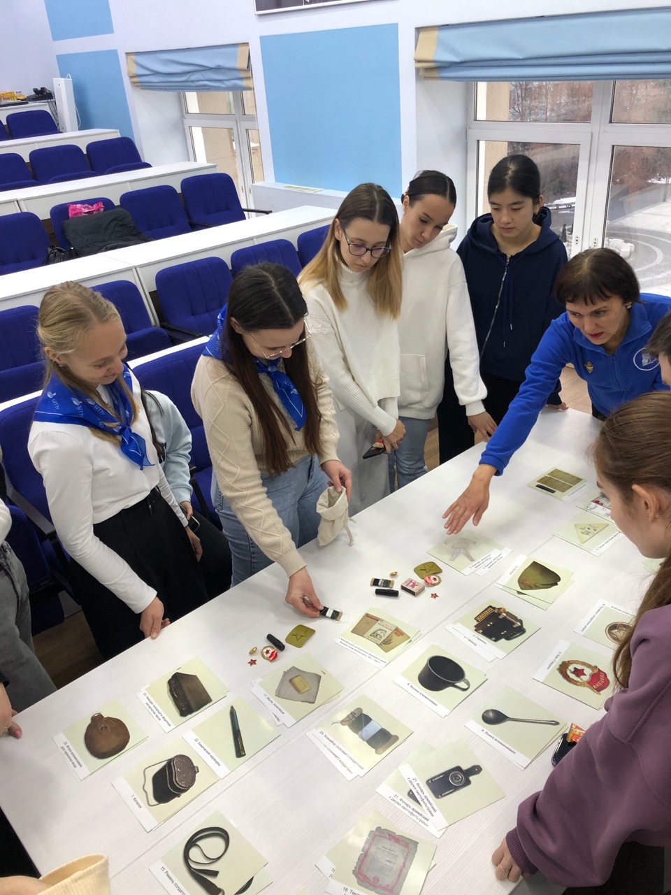 12 ноября 2024 года студенты 3 курса направления «Педагогическое образование», профиль «Начальное образование», волонтеры отряда «Палитра» ИП Мырзайым Чотбаева, Елизавета Егорова, Тахмина Рысбаева и Арина Рясова, под рук.  к.п.н., доц. кафедры ТиМНО Е.А. Савельевой, организовали и провели межфакультетское мероприятие в формате военно-исторического лото для студентов ИП и ИФОМК ( 2 курсы ЗПХОС-21-23, ЗПМОС-21-23,  1 курс ПО_АЯРЯИ-11-24). Тема игры - «Предметы личного пользования солдат и офицеров времен Великой Отечественной Войны 1941-1945 гг.». На карточках лото запечатлены экспонаты Республиканского музея Боевой Славы.