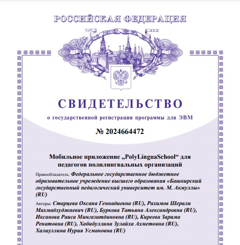 27 сентября 2024 года в институте филологического образования и межкультурных коммуникаций состоялась презентация мобильного приложения для педагогов полилингвальных организаций (свидетельство о государственной регистрации программы для ЭВМ No 2024664472 Российская Федерация. Мобильное приложение «PolyLinguaSchool» для педагогов полилингвальных организаций: No 2024663120: заявл. 10.06.2024: опубл. 20.06.2024 г.), разработанного научным коллективом Акмуллинского  в рамках выполнения государственного задания Министерства просвещения  РФ на тему «Дескриптивное и прогностическое моделирование интегративного содержания полилингвального образования в 1-11 классах образовательных организаций Республики Башкортостан» для  преподавателей и студентов  4-5 курсов, обучающихся по направлению подготовки Педагогическое образование (с двумя профилями подготовки), профиль «Английский язык и немецкий язык», «Английский язык и французский язык», «Родной (башкирский) язык и литература и английский язык».  Доцент кафедры романо-германской филологии и методики обучения иностранным языкам З.Р.Киреева ознакомила с содержанием мобильного приложения, которое включает перечень выражений классного обихода, выражений для организации режимных моментов в школе на русском, башкирском, татарском, английском, немецком и французском языках. 400 выражений ранжированы по темам, озвучены на 6 языках.     Методический материал   может быть использован при подготовке к занятиям по дисциплинам методического блока и при прохождении педагогической практики. Участники встречи подчеркнули практикоориентированный характер разработанного материала и предложили включить приложение в перечень основной литературы РПД по технологиям иноязычного образования.