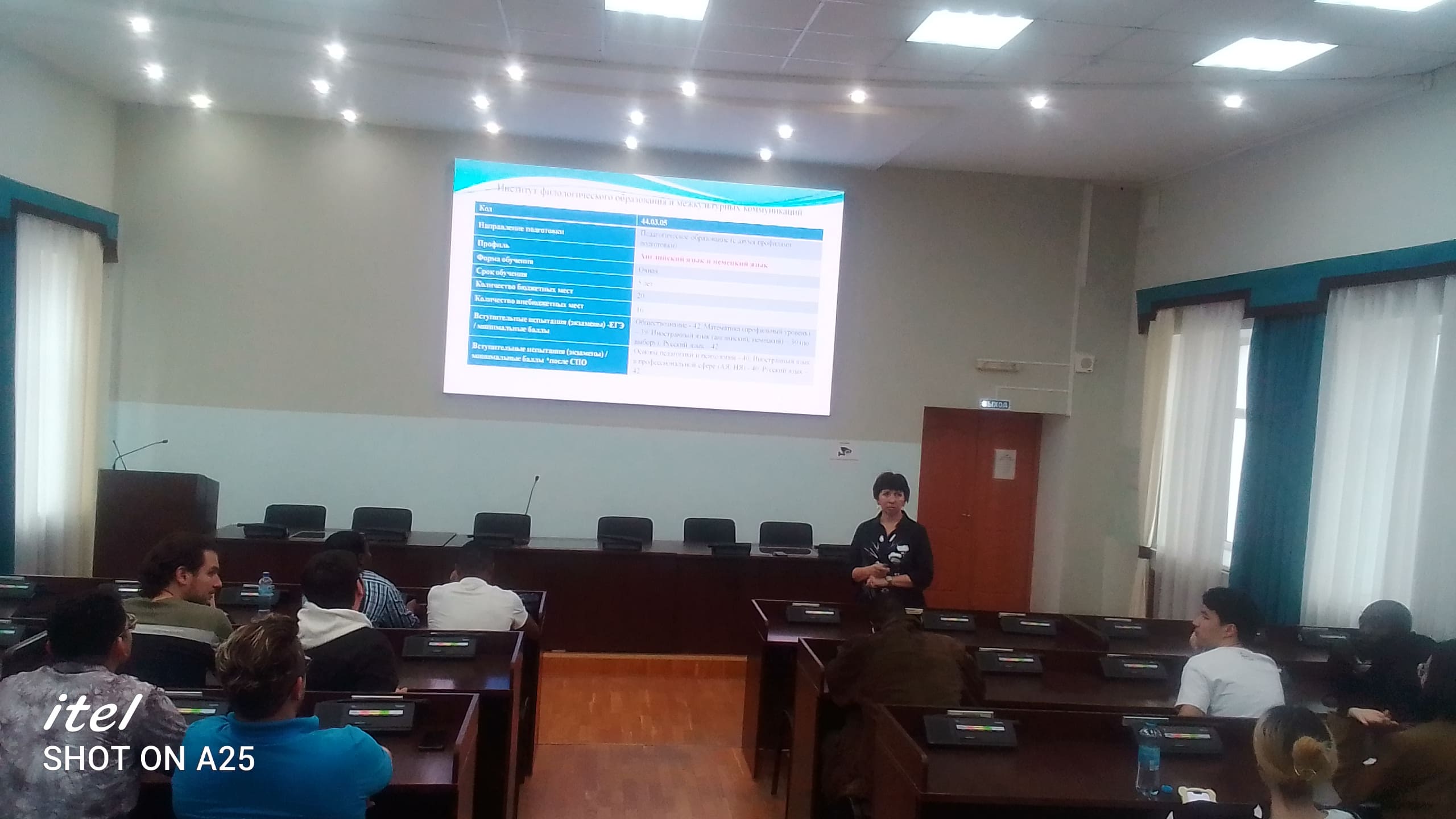 Презентация профориентационного характера была посвящена вопросам, связанным с поступлением в Акмуллинский университет в 2025 году, а также с особенностями и преимуществами образовательных программ, реализуемых в ИФОМК.