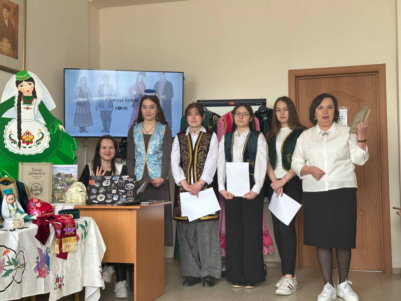 В Институте филологического образования и межкультурных коммуникаций студенты 2 курса профиля «Родной (татарский) язык, литература и русский язык» провели лекцию-презентацию и квиз «Татарский национальный костюм» для студентов Акмуллинского университета. В кабинете образовательно-культурного центра Института Каюма Насыри была оформлена выставка национальных костюмов и элементов костюмного комплекса татарского народа.