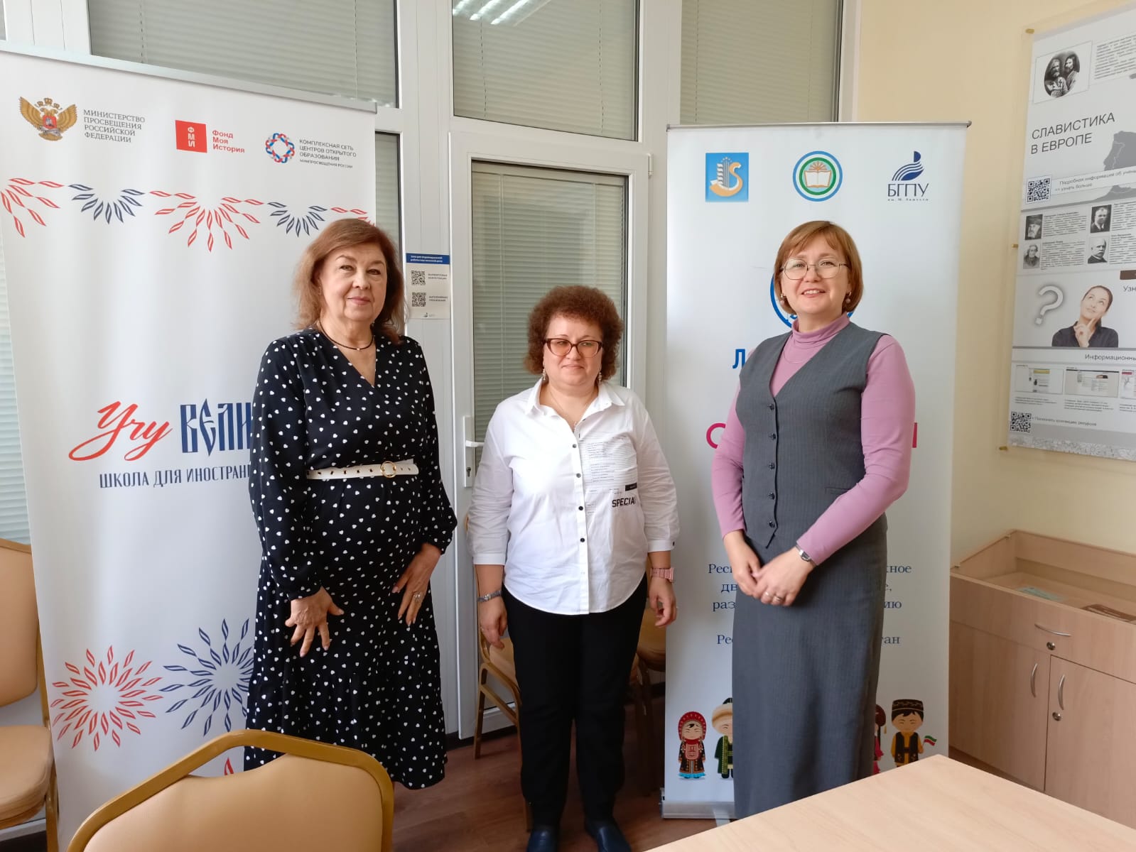 26 сентября 2025 года Институт филологического образования и межкультурных коммуникаций посетила заведующая кафедрой немецкого языка и культуры Московского государственного университета имени М. В. Ломоносова Анжела Едличко, приехавшая в Уфу для участия в международной научной конференции «Историко-культурное наследие Евразии». Во время деловой встречи с директором ИФОМК Халидой Галимовой, заведующей кафедрой английского языка Раисой Иксановой, заведующей кафедрой межкультурной коммуникации и перевода Юлией Юсуповой, доцентом кафедры романо-германской филологии и методики обучения иностранным языкам Гузель Галиевой Анжела Игоревна рассказала о научных мероприятиях, организуемых в МГУ для студентов и преподавателей, с вниманием выслушала рассказ своих уфимских коллег о реализации НИР в ИФОМК.