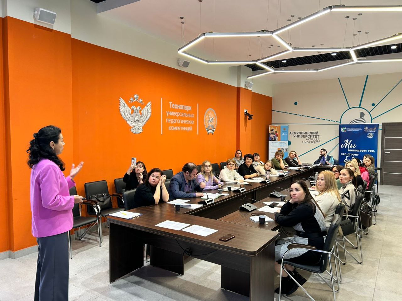 9-10 октября, 30-31 октября и 11-12 декабря 2025 гг. на базе Технопарка Акмуллинского университета доцент кафедры русского языка, теоретической и прикладной лингвистики Л. К. Муллагалиева провела мастер-классы на курсах повышения квалификации учителей нашей республики «Особенности подготовки и сопровождения участников конкурса «Учитель года». Партнёром мероприятия выступил Профсоюз образования Республики Башкортостан.