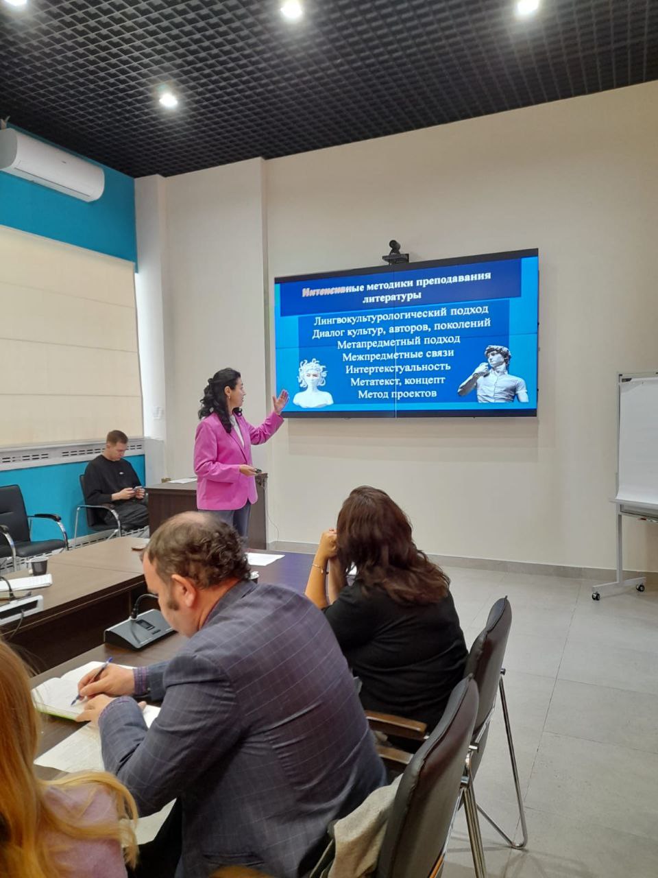 В рамках мастер-классов были раскрыты идеи взаимосвязанного изучения языка и культуры, актуальные вопросы лингвокультурологии, сопоставительного изучения картин мира, проанализирован смыслопорождающий потенциал концепта. Спикер раскрыла сущность концепта как метапредметного понятия, на материале современной русской литературы (творчества С.Кржижановского, В.Астафьева, В.Сероклинова, Д.Рубиной и др.) показала способы семантизации концептов «окно», «квадрат», «глагол», «правда», «бабушка» и др.