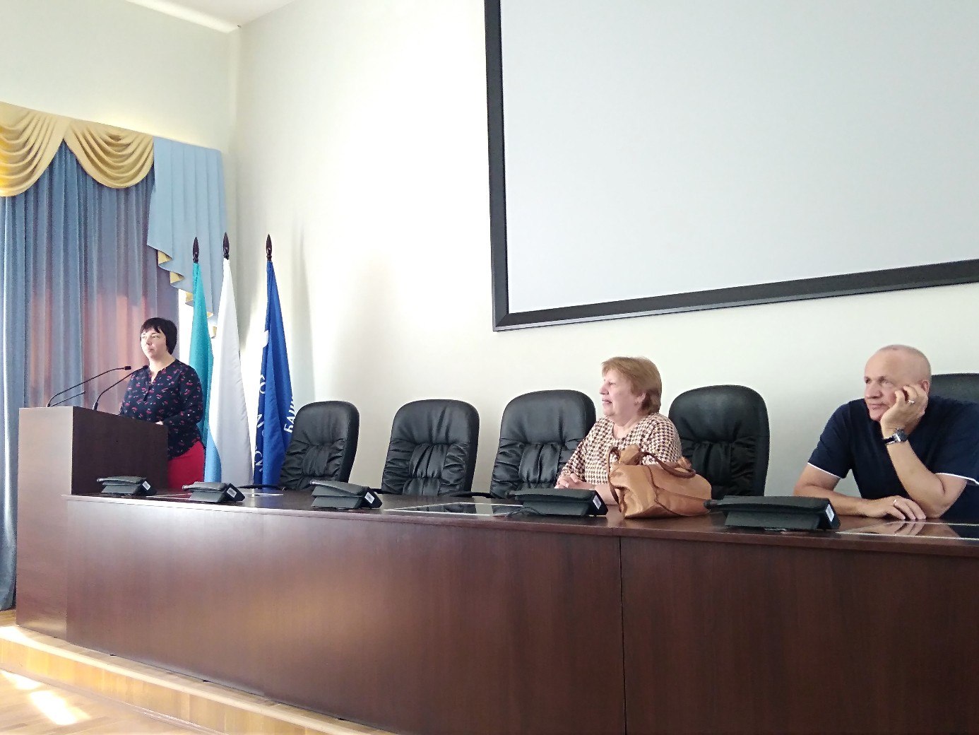 Перед студентами и аспирантами выступили Марина Ростиславовна Желтухина, доктор филологических наук, профессор, зав. научно-исследовательской лабораторией «Дискурсивная лингвистика», директор Центра коммуникативных технологий Волгоградского государственного социально-педагогического университета, и Анатолий Викторович Омельченко, почетный доктор наук, профессор кафедры актерского мастерства.