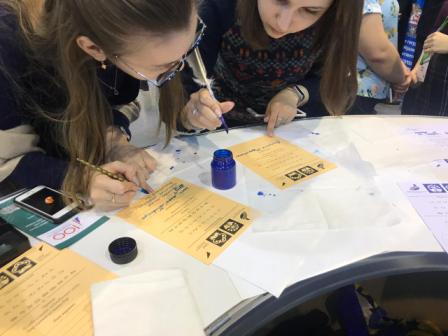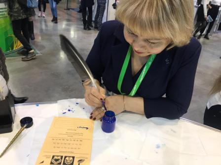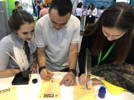 Волонтёры провели акцию «Каллиграфическое письмо»: рассказали об особенностях каллиграфии, об истории пера. Среди школьников и студентов было очень много желающих написать себе письмо гусиным пером. Старшее поколение посетителей поделилось с волонтёрами воспоминаниями о своих школьных годах, когда им приходилось писать перьевыми ручками.