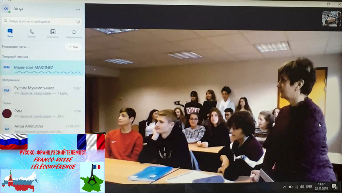 23 ноября 2018 года на базе МБОУ СОШ «Лицей 160» состоялась франко-русская телеконференция. Участниками мероприятия стали учащиеся среднего звена уфимского лицея и подростки лицея им. Эдгара Кине города Бурк-ан-Брес (регион Рона-Альпы).