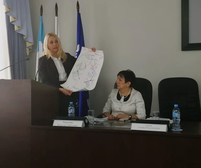 Кандидат философских наук, доцент кафедры методики преподавания иностранных языков и второго иностранного языка БГПУ им. М. Акмуллы Эльвира Абдулгалимовна Гареева ознакомила учителей с авторским вариантом технологии «Учебная фирма как форма организации иноязычного образовательного процесса» и предложила опробовать  ее на практике.