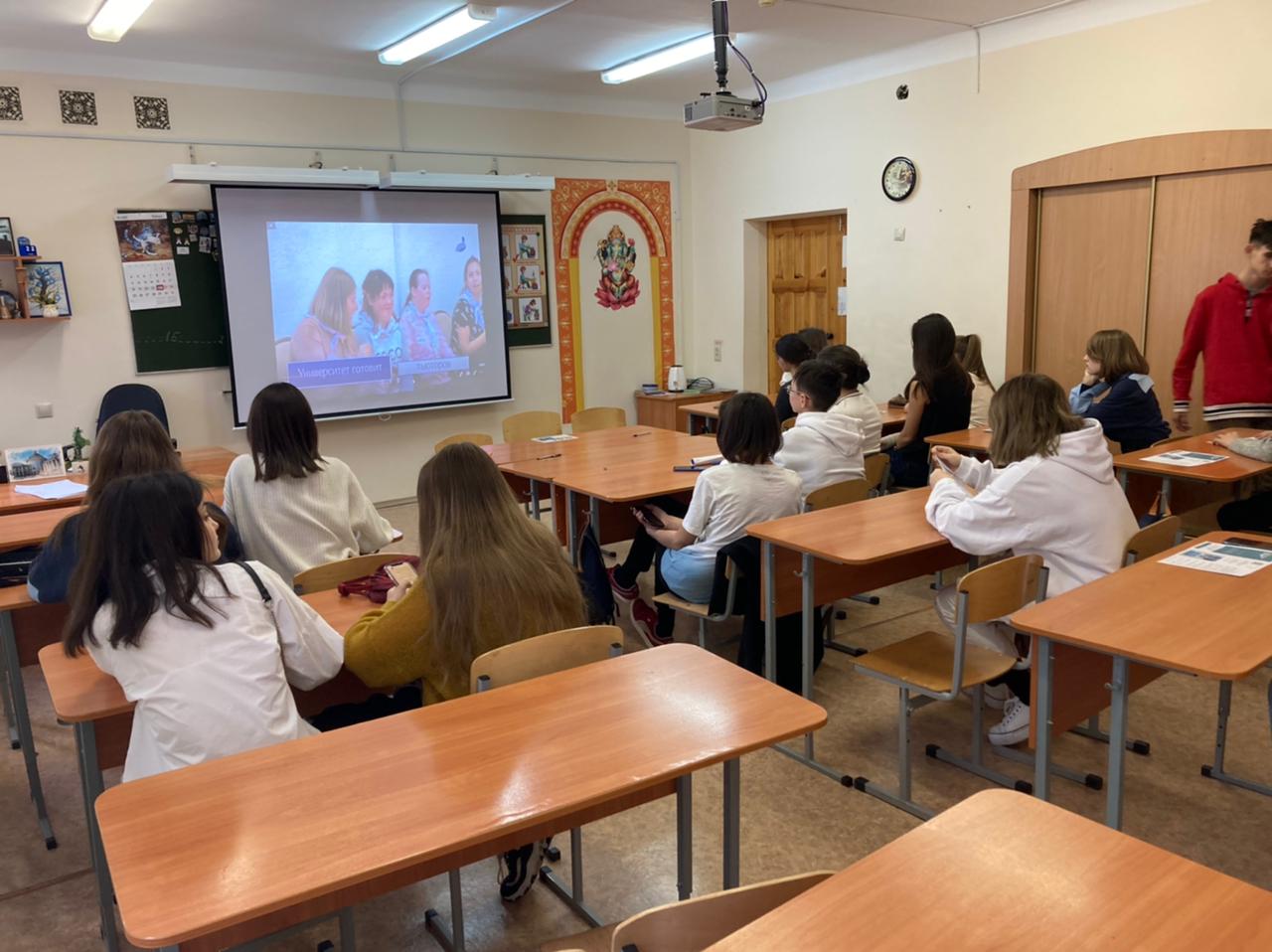 На встрече с учащимися 9-11 классов Гергель О.В. рассказала о программах профессионального образования, реализуемых кафедрой английского языка, о преимуществах обучения в БГПУ им.М.Акмуллы и ответила на вопросы потенциальных абитуриентов касательно возможностей, предоставляемых университетом.