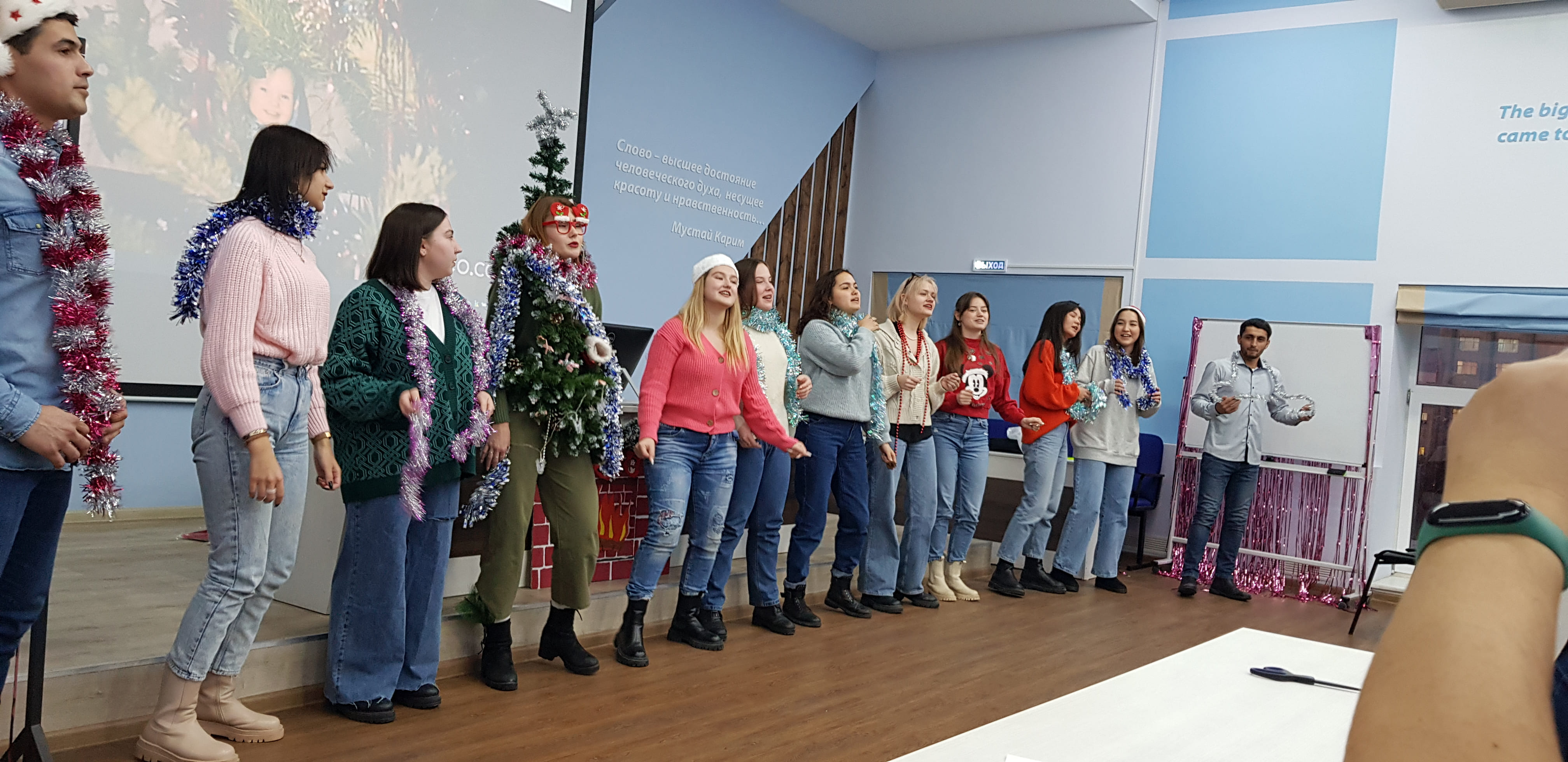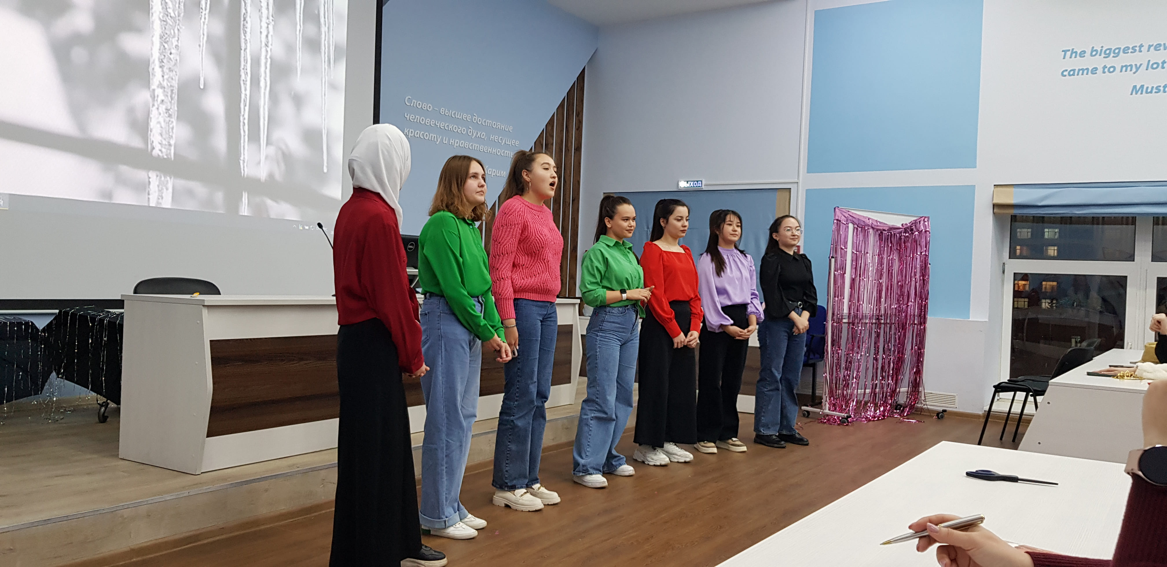 28 ноября 2022 г. был организован и проведен музыкальный конкурс Clash of the Choirs («Битва хоров»), который стал итоговым проектом языковой практики по английскому языку среди студентов 4 курса направления 44.03.05 Педагогическое образование (с двумя профилями подготовки).  Компетентное жюри в составе: учителей английского языка  высшей категории  Гульнары Флюровны Рябовой (частная школа «Гармония») и Марины Анатольевны Андреевой (частная школа «Баярд»),  а также доцентов кафедры  английского языка Абдюшевой Светланы Азаматовны и Семеновой Натальи Васильевны,  оценивали выступления участников конкурса по  6 критериям: «Умение передать характер и основной смысл песни», «Слаженность исполнения сценического действия», «Качество исполнения (мелодичность пения)», «Артистичность», «Сценография», «Использование сценических костюмов и реквизита».  Следует отметить, что студенты и руководители практики проделали кропотливую работу по подготовке ярких, насыщенных номеров, содержание которых переносило зрителей то в музыкальный мир сказки, то в мир рок, поп-музыки и современной электронной музыки.  В результате музыкальный праздник получился  красивым и оставил положительные впечатления у всех участников. По окончании конкурса были подведены  итоги.