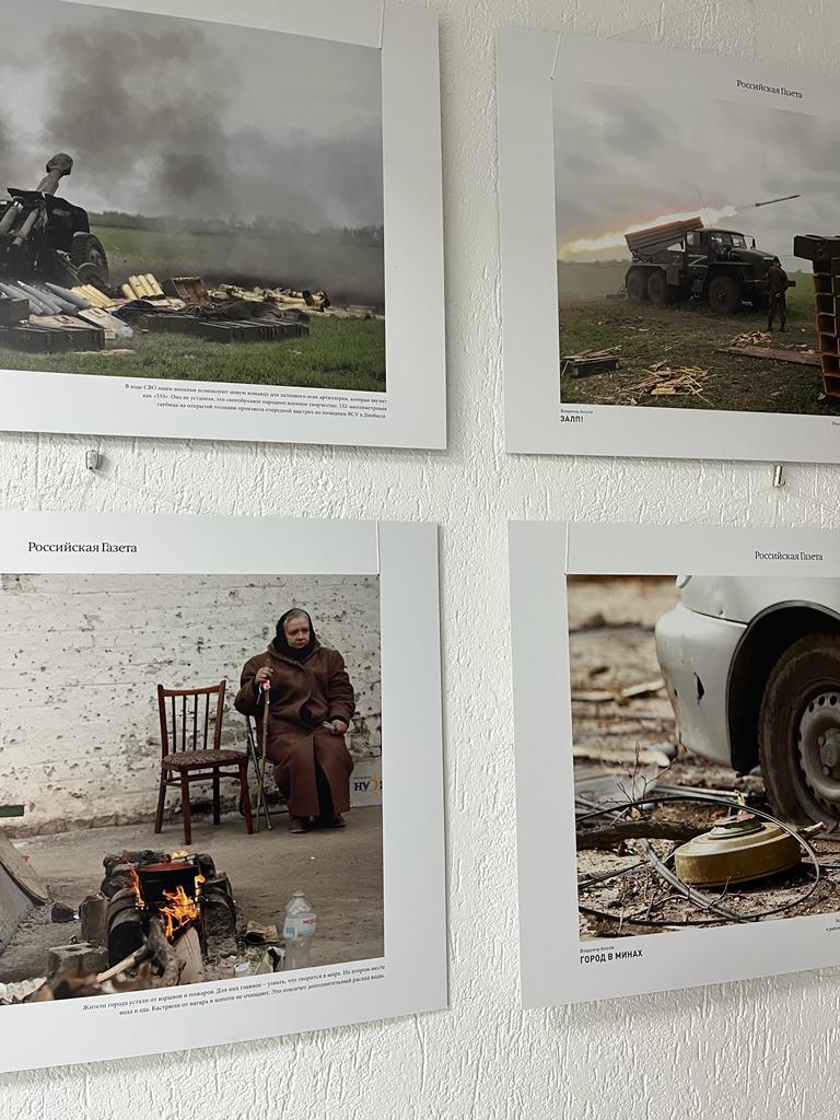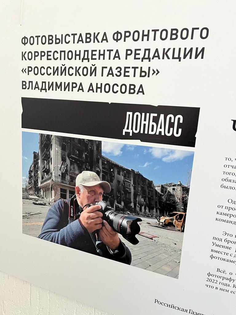 С этих слов начинается выставка фронтового корреспондента Владимира Аносова "Донбасс". Им представлены фотографии, которые отражают жизнь мирных жителей и российских военных, находящихся в условиях боевых действий. Сжимается сердце от фотографий с невинными детьми, вынужденными испытывать весь ужас жестокости нацизма. Дома, в которых когда-то жили люди, культурные объекты теперь лежат в руинах. Российские военные рискуют своими жизнями и делают всё возможное для защиты мира от коричневой чумы. Глядя на эти фотографии, действительно тяжело поверить, что такой ужас может происходить в наше время.