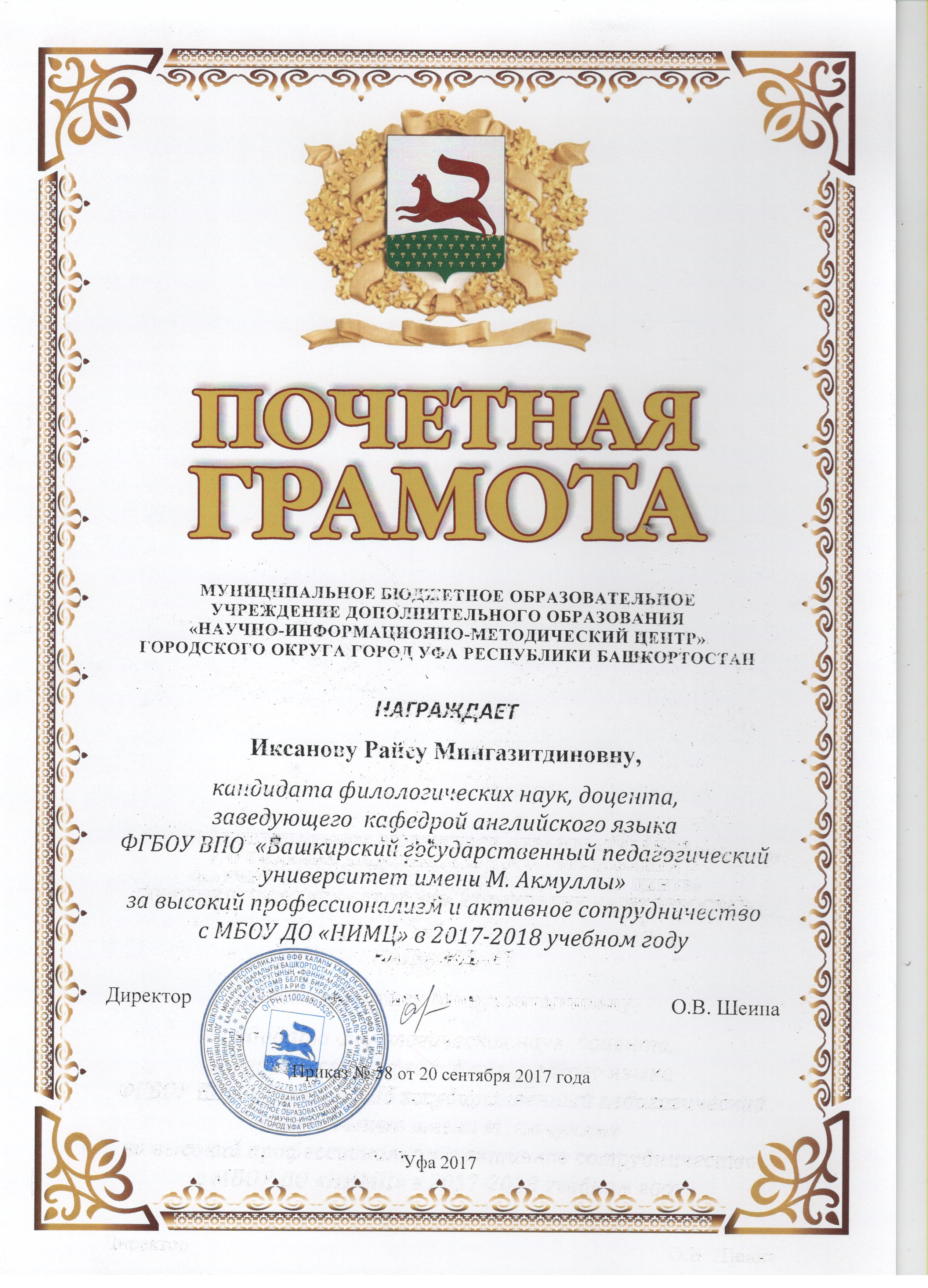 Сотрудничество с Научно-информационно-методическим центром Уфы