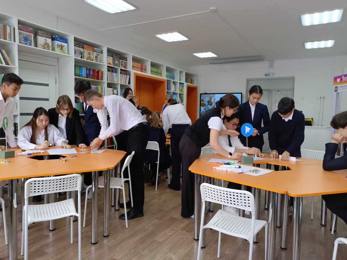 В Школе-гимназии №30 представилась возможность посетить интегрированный урок английского языка на тему «Электронные приложения» с включением русского и казахского языков в 10 классе. Урок проходил в формате командной игры, где участники должны были назвать и обосновать преимущества и недостатки популярных электронных приложений. В рамках внеурочной деятельности с учащимися 6 класса был проведен психологический тренинг на командообразование на английском языке на тему «Невербальное общение».