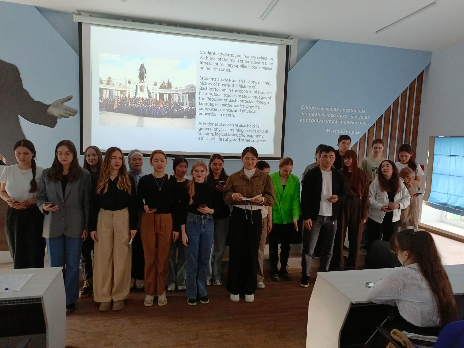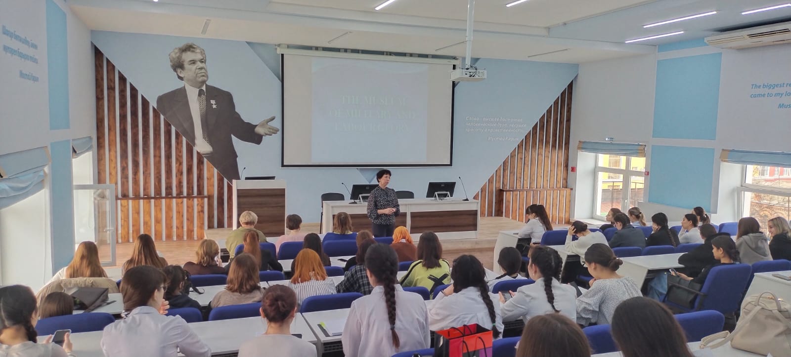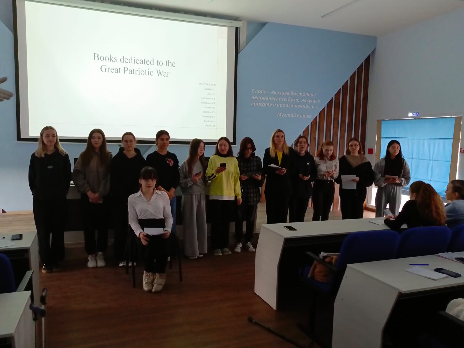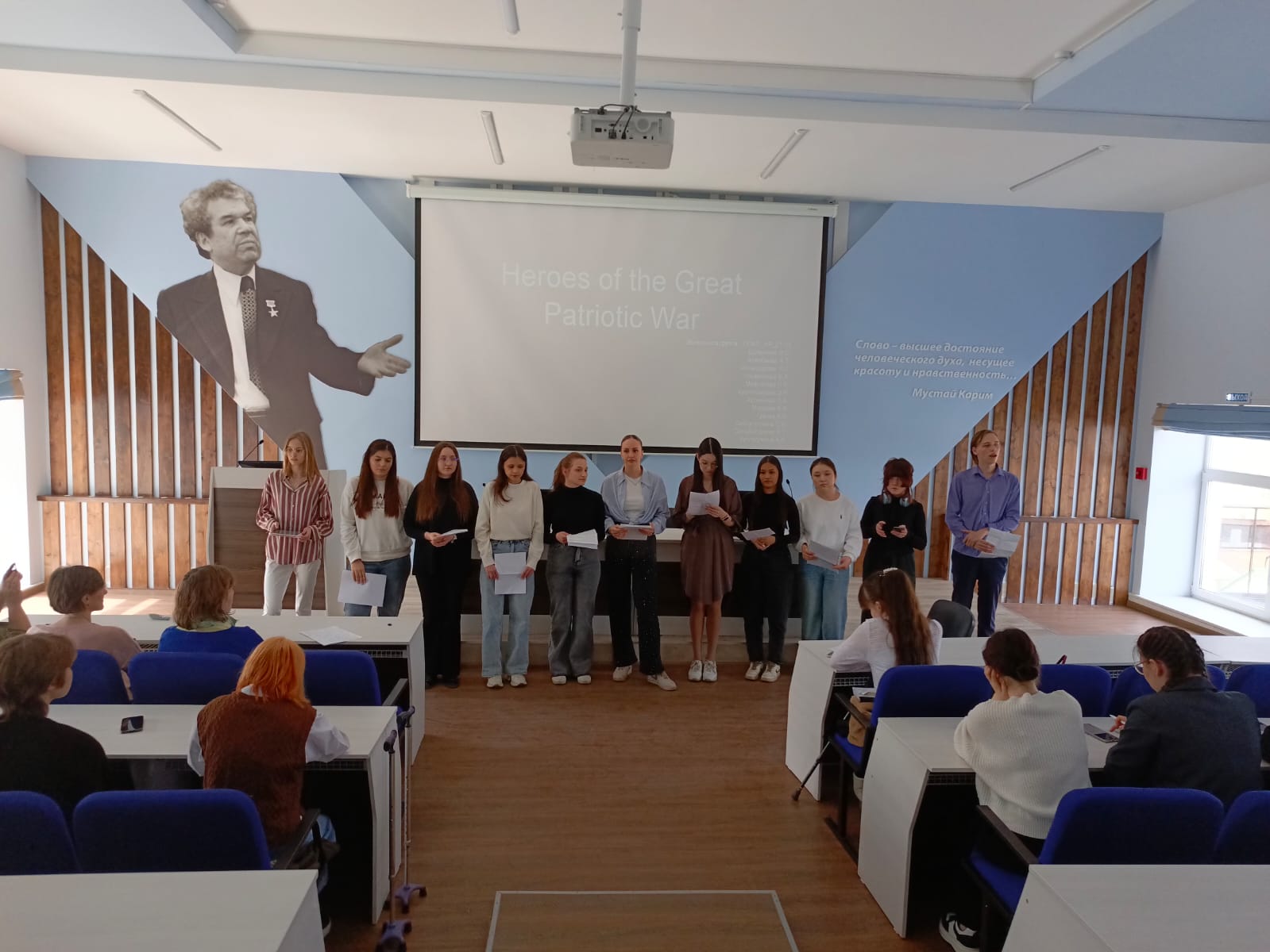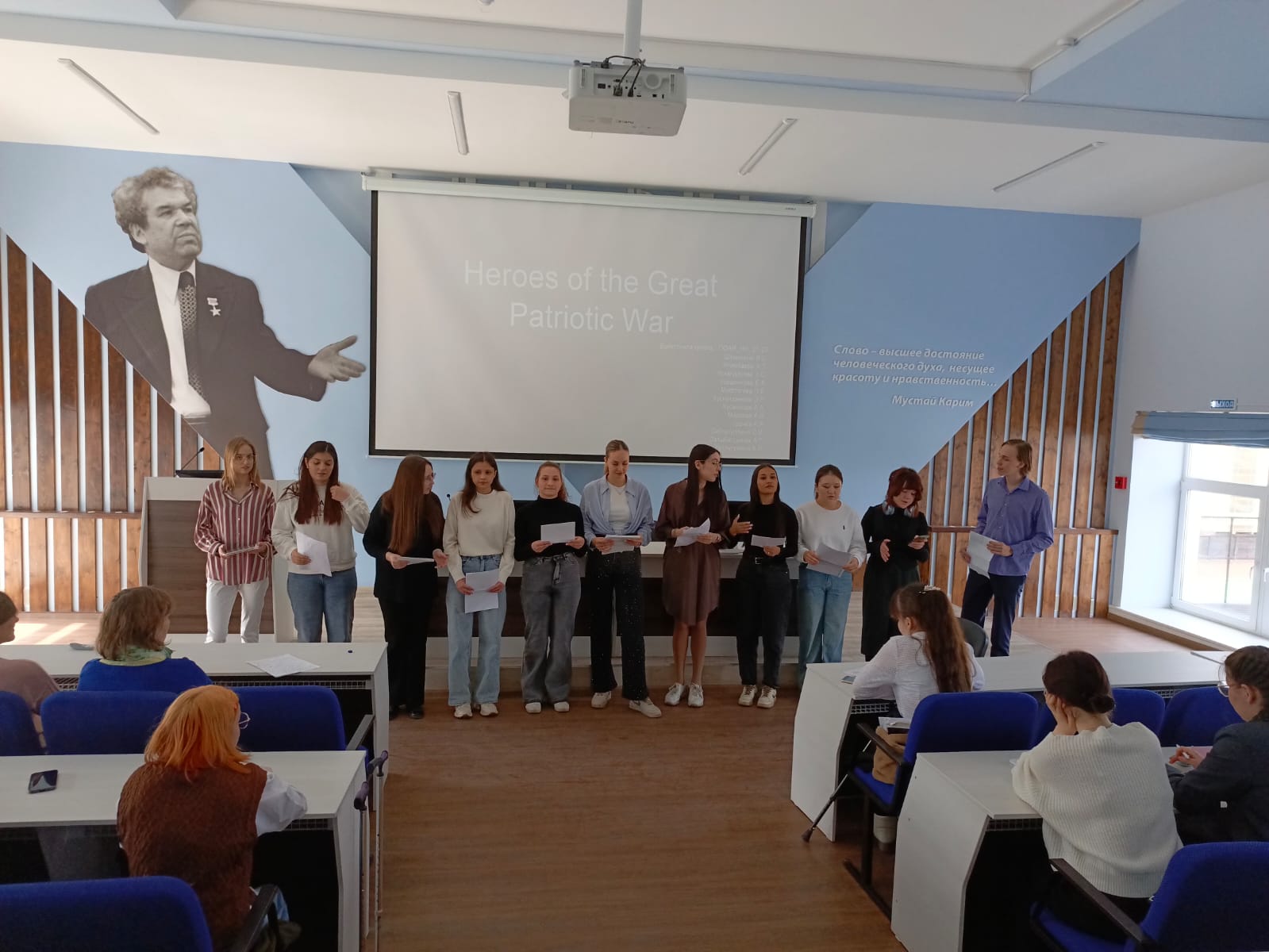 7 апреля 2025 г. в институте филологического образования и межкультурных коммуникаций прошло значимое воспитательно-патриотическое мероприятие – виртуальный  «Музей боевой и трудовой славы». Пять студенческих  групп (ПОАЯ_НЯ-21-23, ПОАЯ_ФЯ-21-23, ПО_АЯРЯИ-21-23, ПОБЯ_АНЯ-21-23, ПОАЯ_ВЯ-21-23) выступили на английском языке с презентациями «тематических залов» музея, посвященных 80-летию победы в Великой отечественной войне: «Герои Великой отечественной войны», «Труженики тыла», «Великая отечественная война в произведениях писателей», «Музеи и памятники, посвященные Великой отечественной войне», «Внуки и правнуки героев Великой отечественной – защитники Отечества».