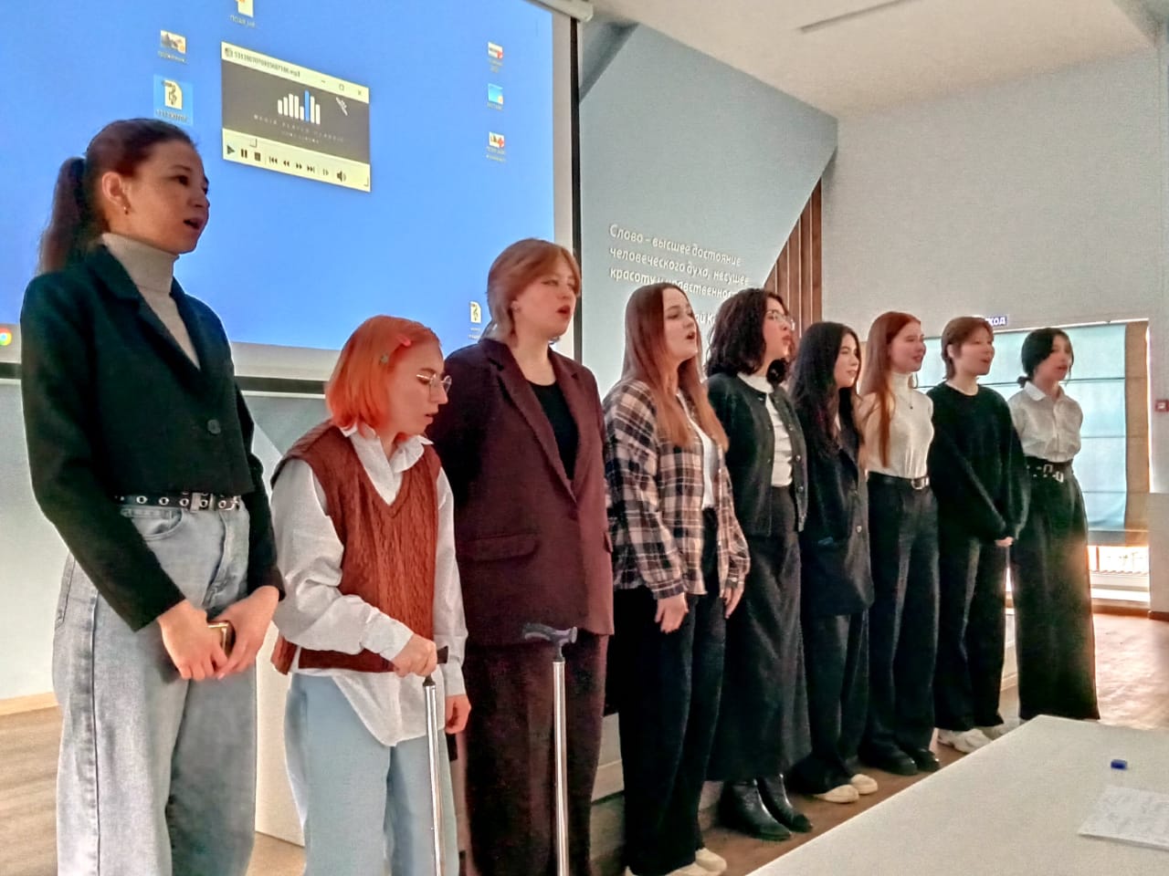 Особая роль в презентации была отведена групповому исполнению песен военных лет на английском языке. Прозвучали мелодии знаменитых «Катюши», «Смуглянки», песен «Темная ночь», «Священная война». Особый отклик вызвала современная песня «И все о той весне».