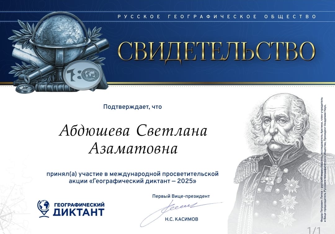 Кафедра английского языка приняла участие в Международной просветительской акции Русского географического общества «Географический диктант-2025». На вопросы Географического диктанта – 2025, посвященного 180-летию Русского географического общества, 80-летию Победы в Великой Отечественной войне, 500-летию освоения Северного морского пути, под руководством преподавателей кафедры английского языка ответили студенты 1, 2 и 4 курсов Направления 44.03.05 Педагогическое образование, направленность (профиль) «Английский язык и немецкий язык». В акции приняли участие 50 студентов и преподавателей кафедры английского языка.