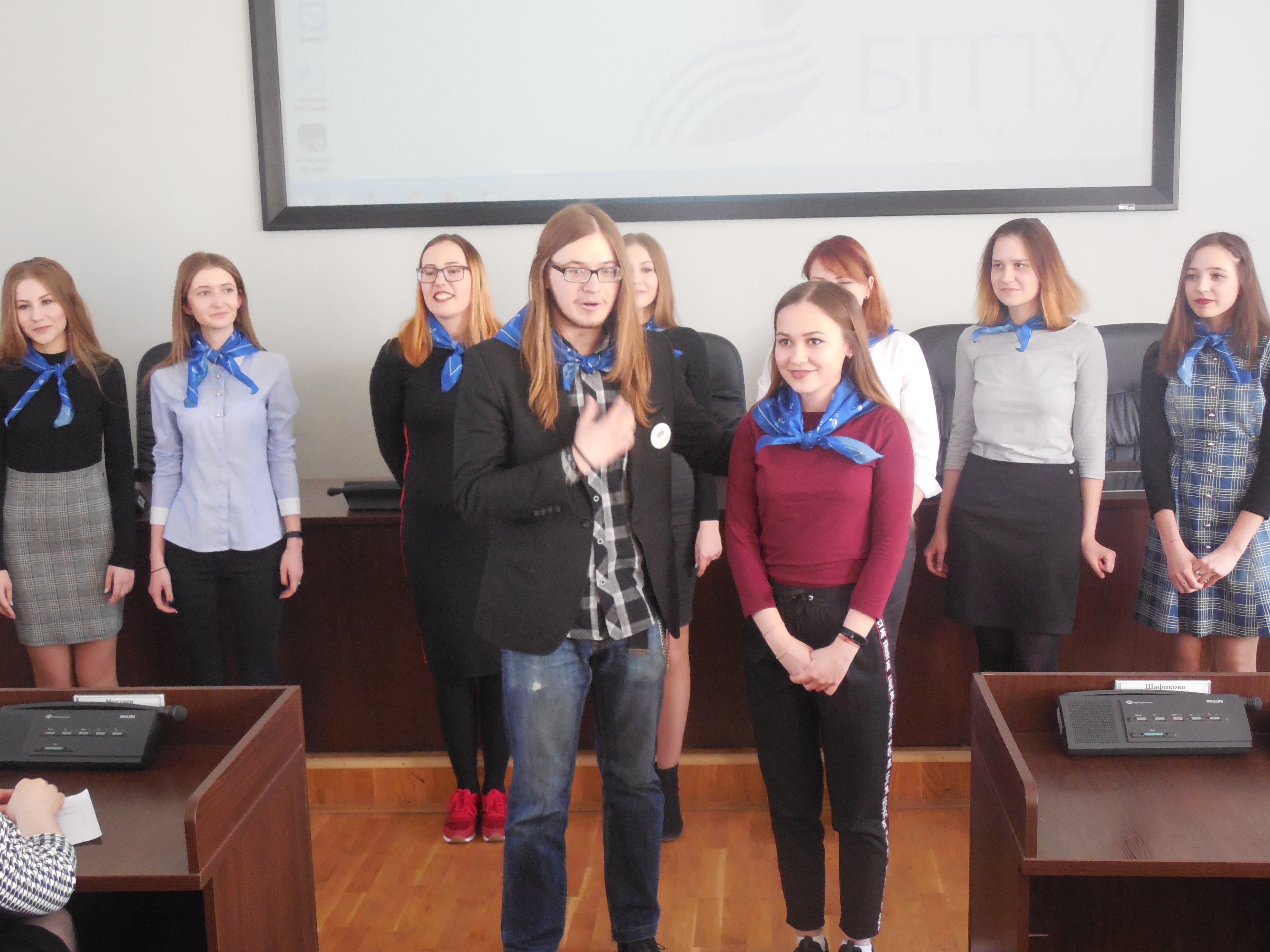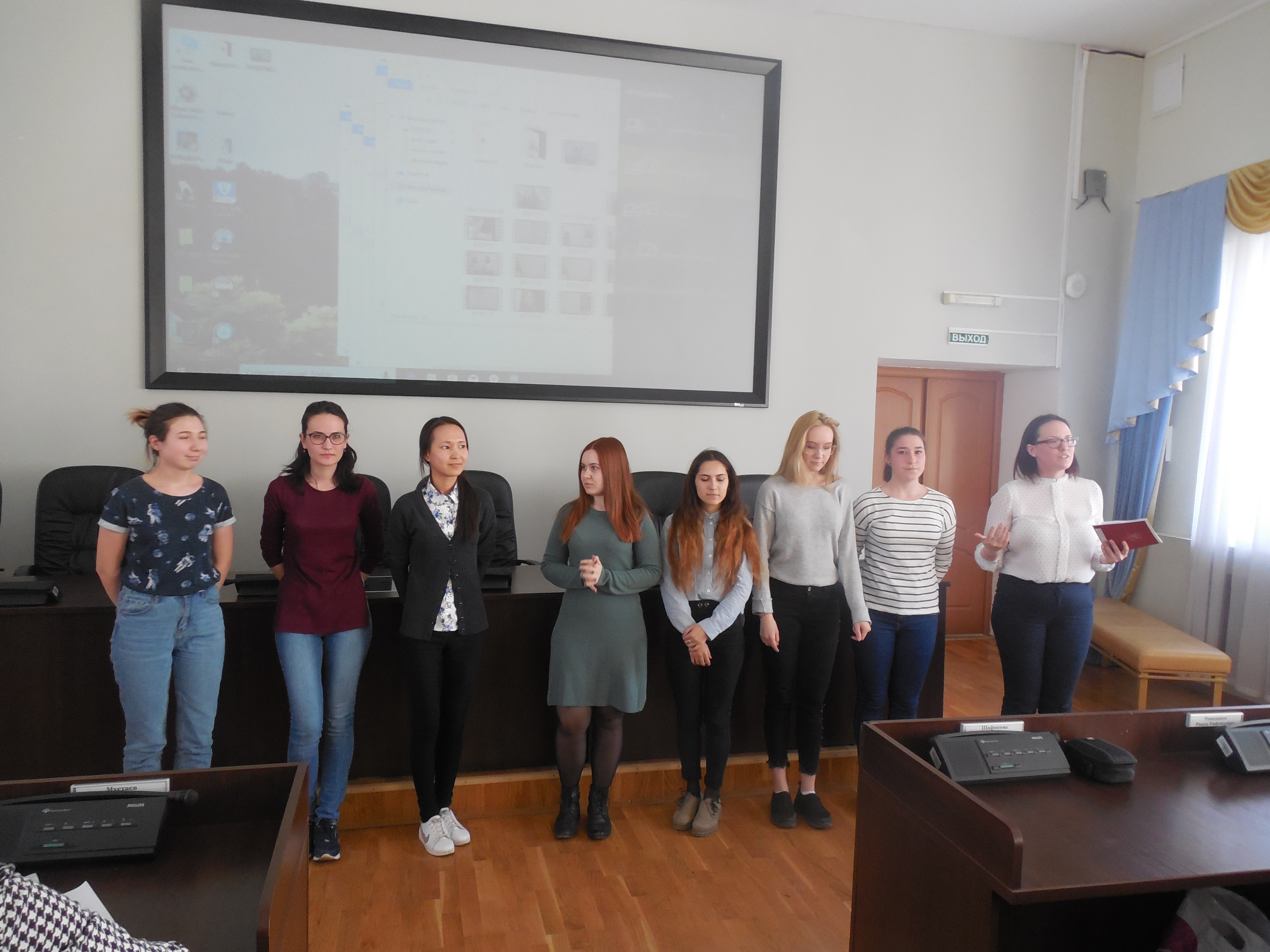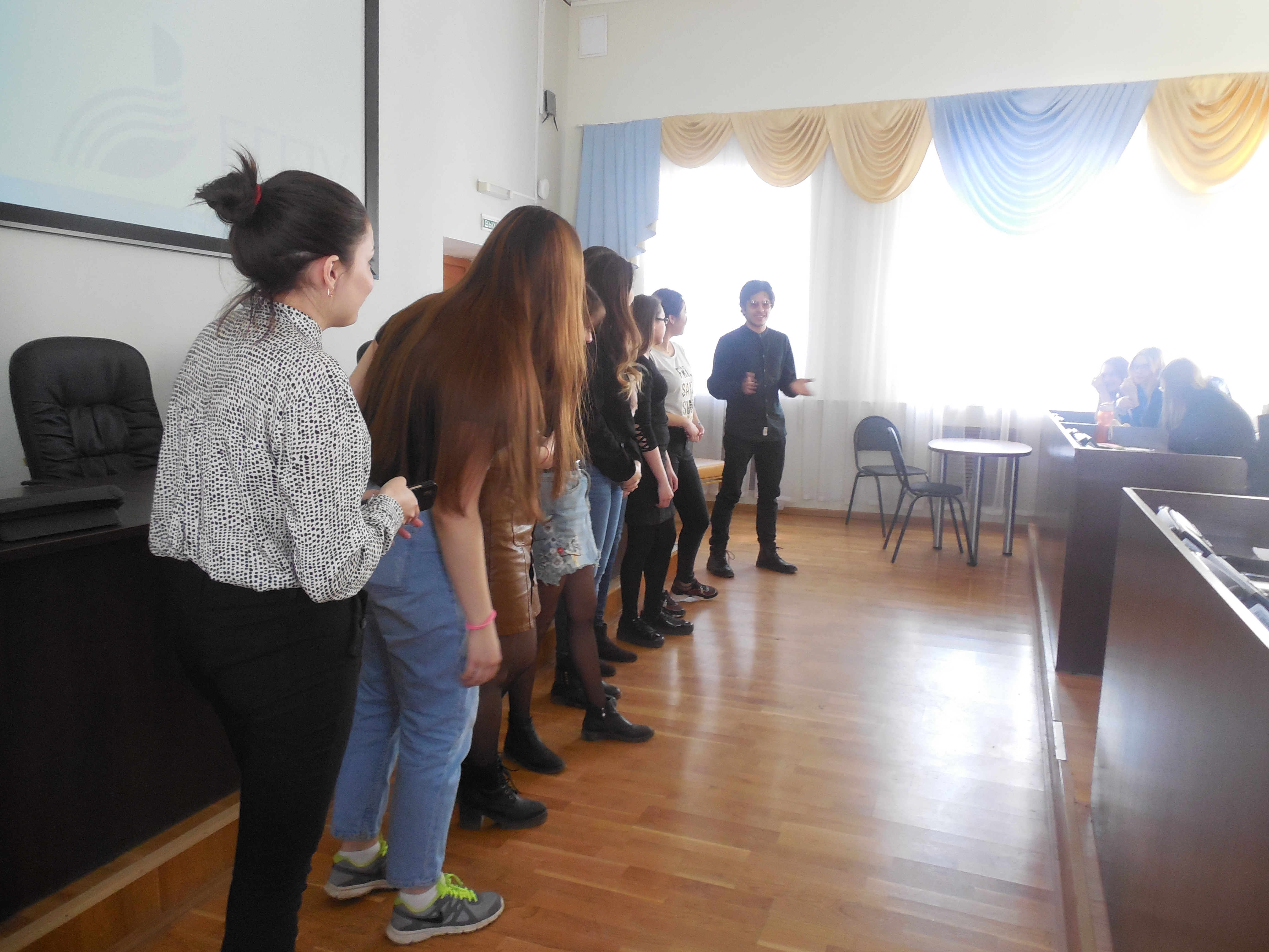 Все группы подошли к выполнению задания по-своему, 201 группа сняла видеоролик, в котором студенты показали иностранной гостье свой институт, 202 группа погрузила зал в атмосферу компьютерной игры, 203 - показала свою студенческую жизнь необычному студенту по обмену из Хогвартса, 204 - подготовила выпуск новостей об Институте. Победителями стала 205 группа, которая представила общее выступление, где каждый из студентов смог высказаться, умело соединив свою презентацию с роликом, который демонстрировался на экране.
