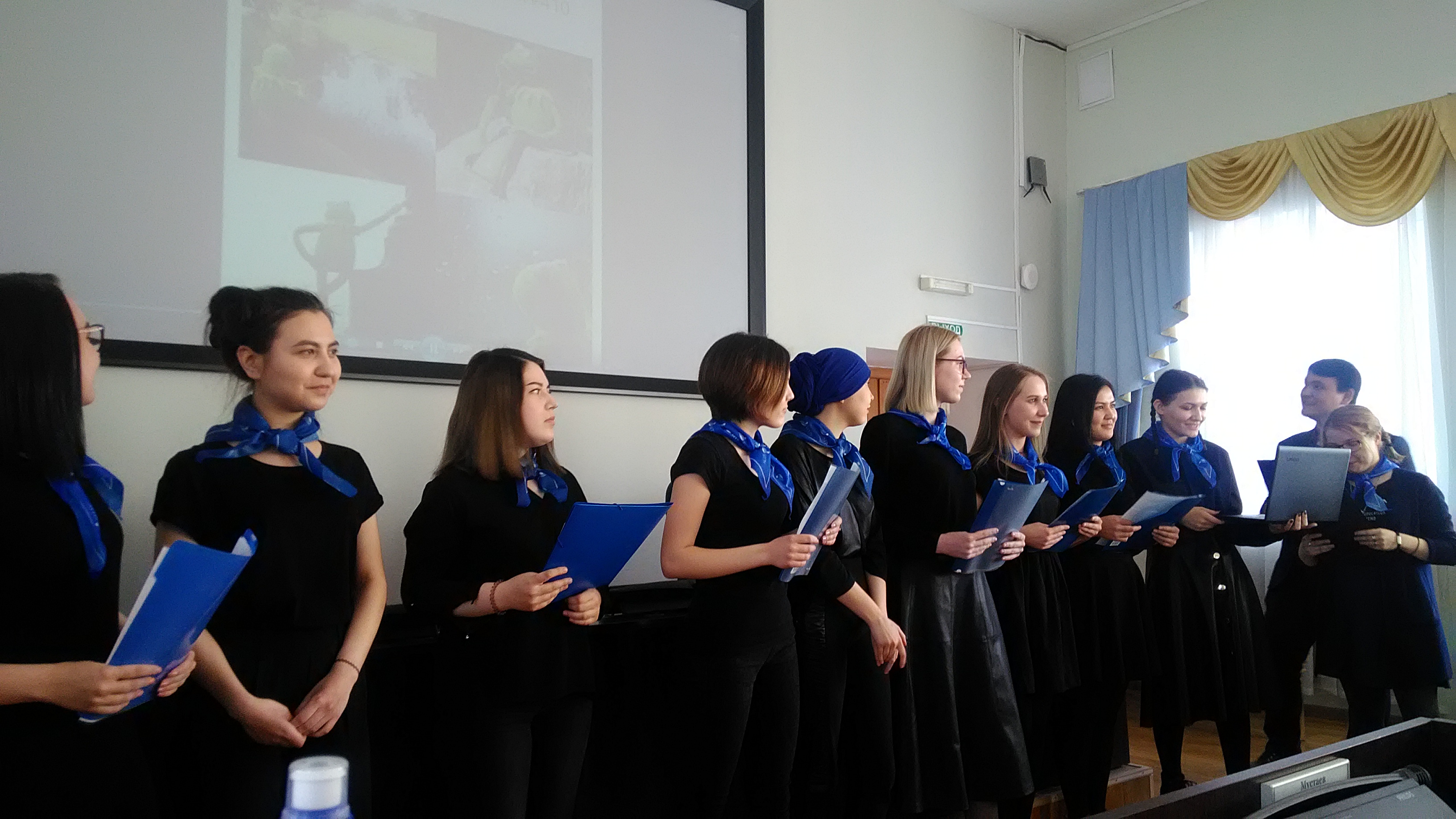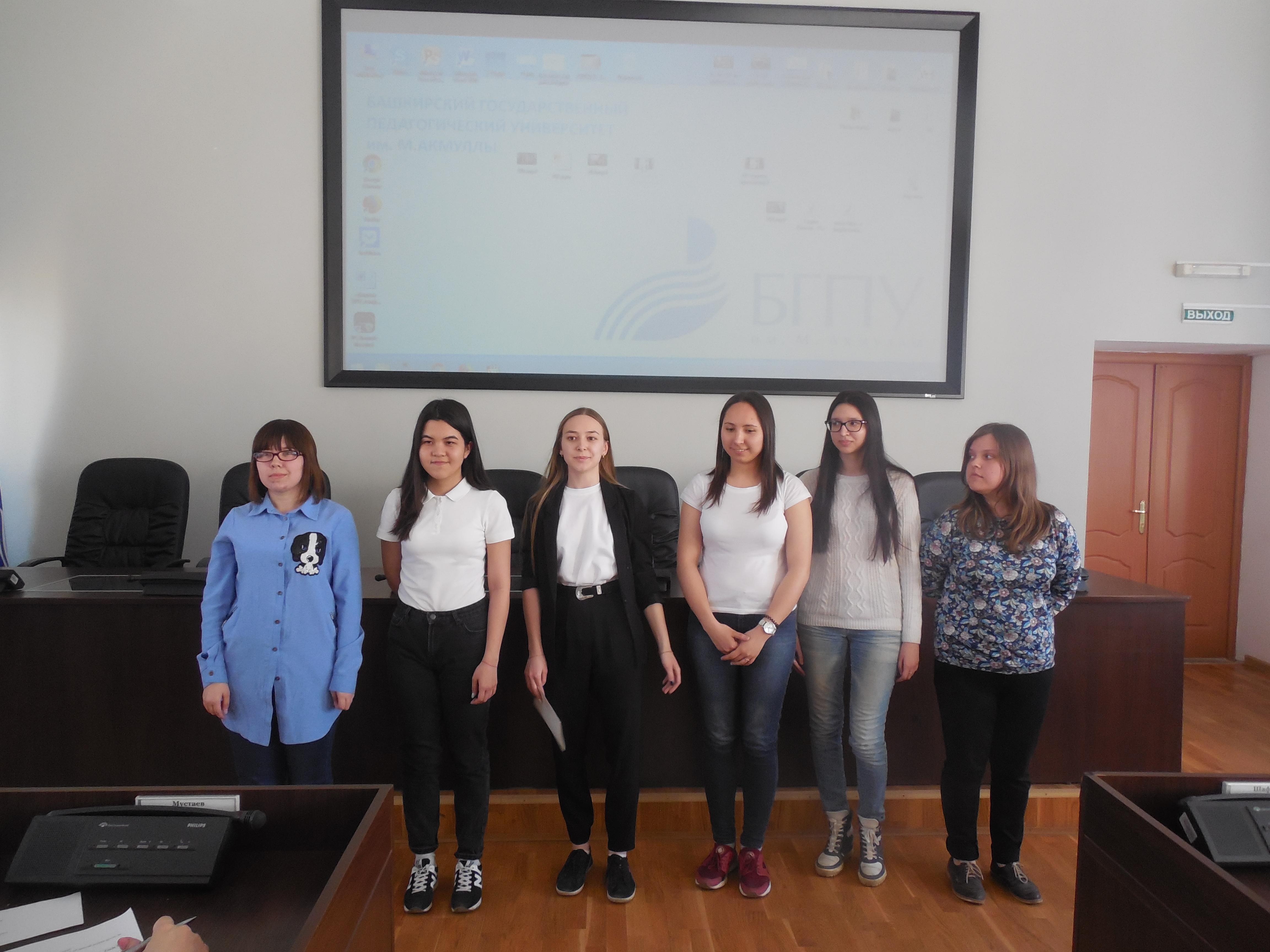 Защита проектов проходила в форме конкурса. Строгое жюри в лице руководителей практики - доцента кафедры английского языка, к.ф.н. Абдюшевой С.А., ассистента кафедры английского языка Васильевой В.П., ассистента кафедры английского языка Гималовой Э.М., заведующей кафедрой английского языка, доцента, к.ф.н. Иксановой Р.М, а также старшего преподавателя кафедры английского языка Саттаровой Р.М., оценивали работу студентов по ряду критериев, которые включали в себя грамотное владение языком, умение работать в команде, творческий подход к заданию, умение презентации проекта.