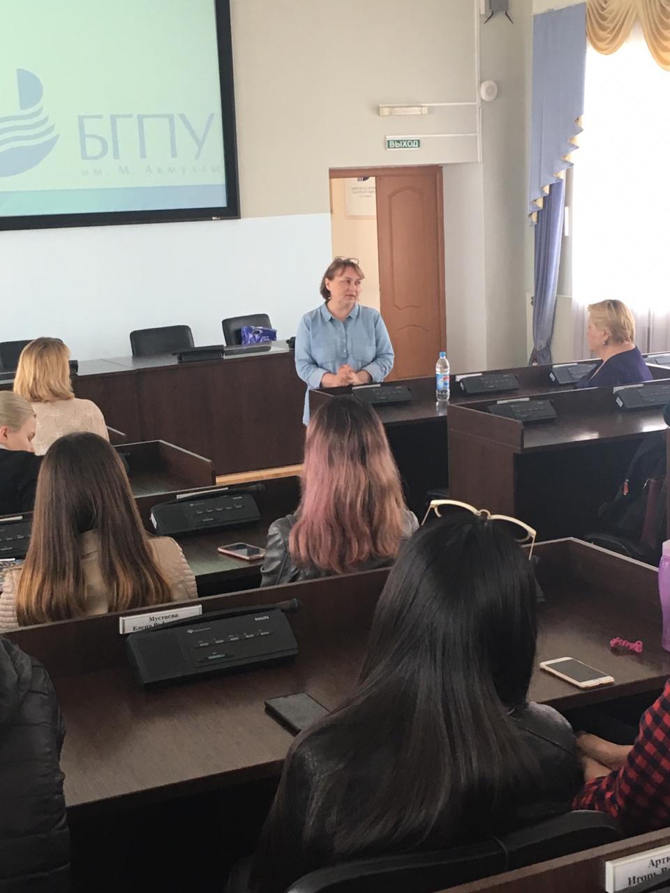 07 мая 2019 г. состоялась встреча студентов 5 курса отделения зарубежной филологии ИФОМК с потенциальными работодателями – представителями образовательных организаций г. Уфы. Перед выпускниками выступили директор Центра Кембриджских экзаменов RU081 Фаузия Явитовна Аминева, руководитель лингвистического центра «High Street Language School» Ирина Анатольевна Рахматуллина, учитель английского и немецкого языков, председатель профкома МБОУ «Школа № 74» г. Уфы Наталья Николаевна Ахтямова.