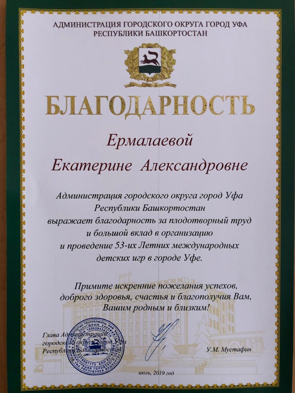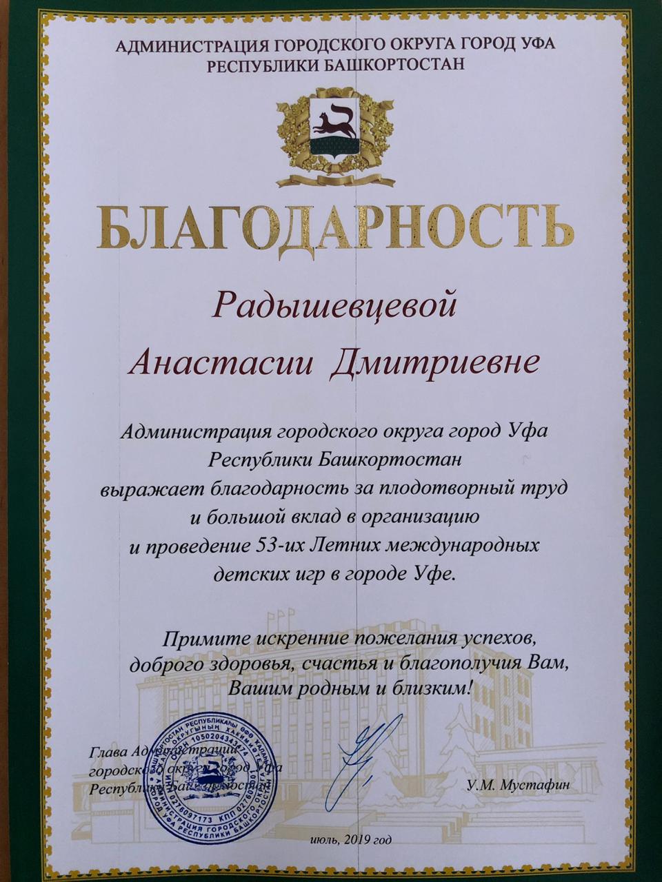 Поздравляем студентов 5 курса Института филологического образования и межкультурных коммуникаций Ермолаеву Екатерину, Кадушечкину Александру, Радышевцеву Анастасию, Таюпову Лиану с вручением благодарностей от Администрации ГО г. Уфа. Под руководством доцента кафедры английского языка Амировой О.Г. наши студенты приняли активное участие в организации и проведении 53-их Летних международных детских игр, обеспечивая лингвистическое сопровождение на высоком профессиональном уровне!