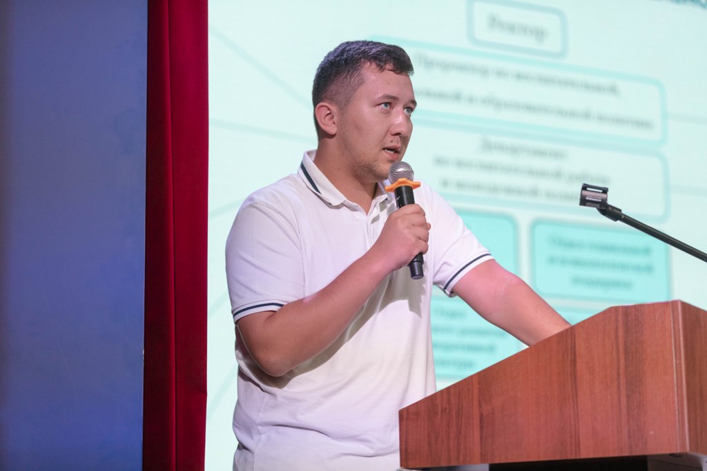Директор департамента по воспитательной работе и молодежной политике Вильдан Исянгильдин рассказал об основных направлениях воспитательной работы в вузе, студенческом самоуправлении и призвал ребят включаться в творческие и спортивные мероприятия, волонтерскую деятельность и другие активности.