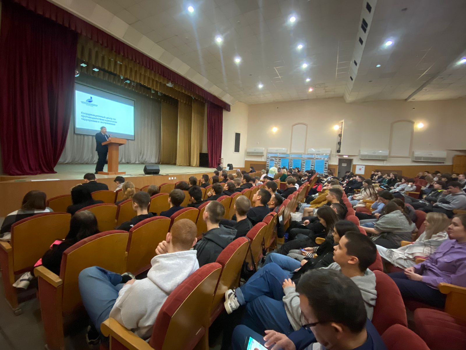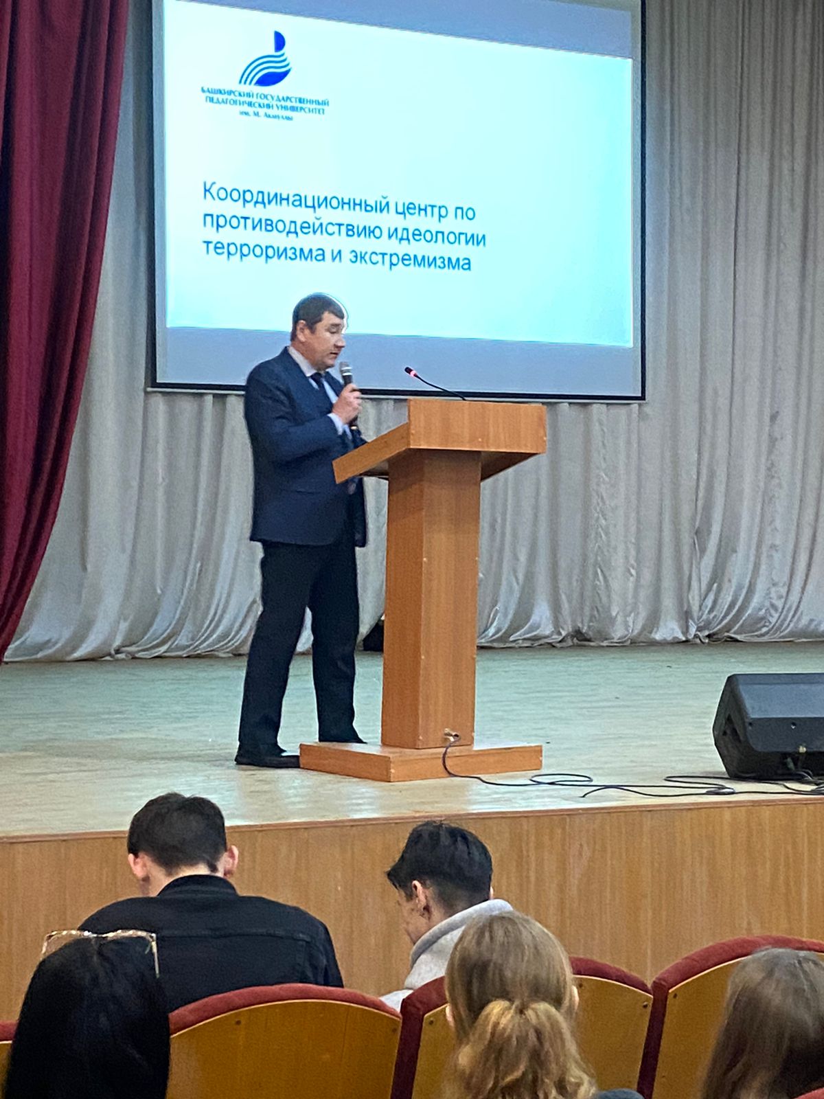 С 21 по 26 декабря 2023 года ведущий специалист Координационного центра по противодействию идеологии терроризма и экстремизма Насыров А.А. по приглашению Уфимского топливно-энергетического колледжа выступил перед студентами учебного заведения с лекциями об экстремизме и его проявлении терроризме. Мероприятиями были охвачены максимальное количество лиц, получающих знания в стенах учебного заведения.