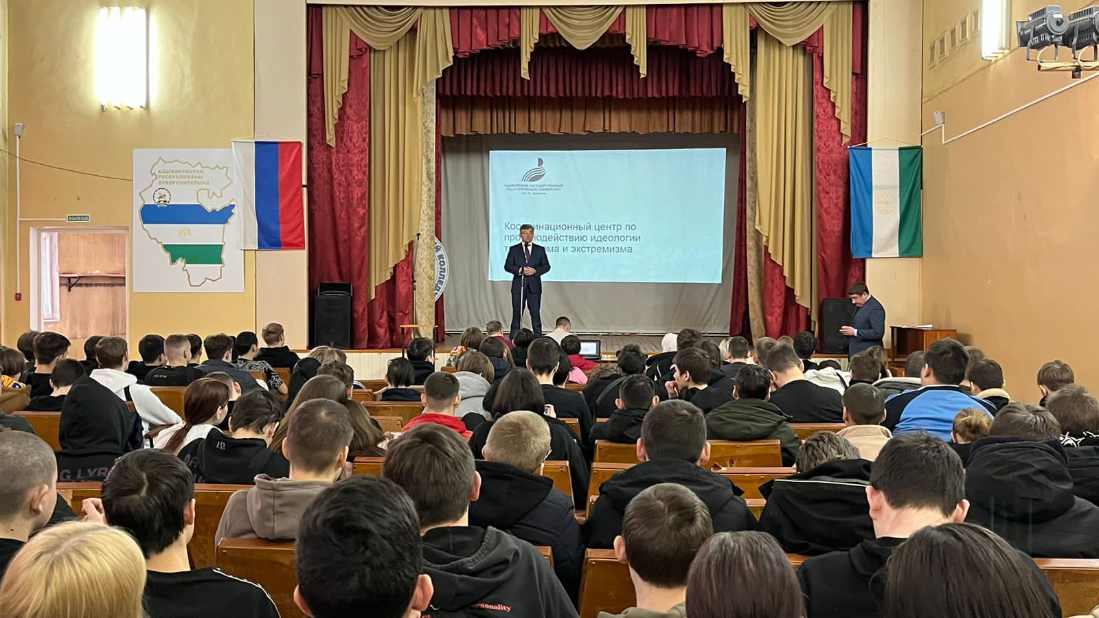 6 февраля 2024 года в Стерлитамакском политехническом колледже прошел профилактический семинар по вопросам противодействия проявлениям экстремизма и терроризма. Организатором мероприятия выступил Координационный центр по противодействию идеологии терроризма и экстремизма Акмуллинского университета, а слушателями стали студенты и преподаватели средний учебных заведений Стерлитамака.