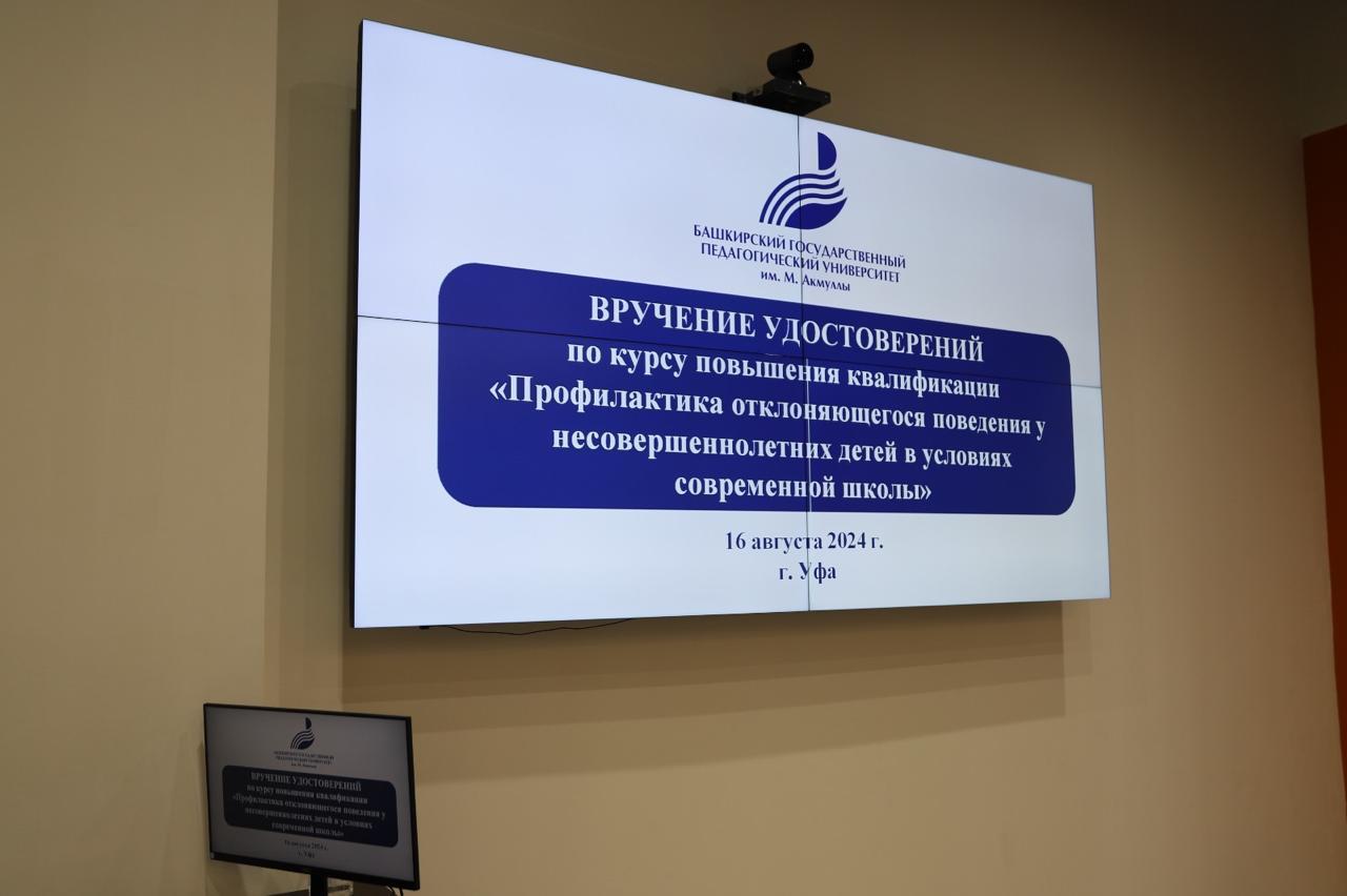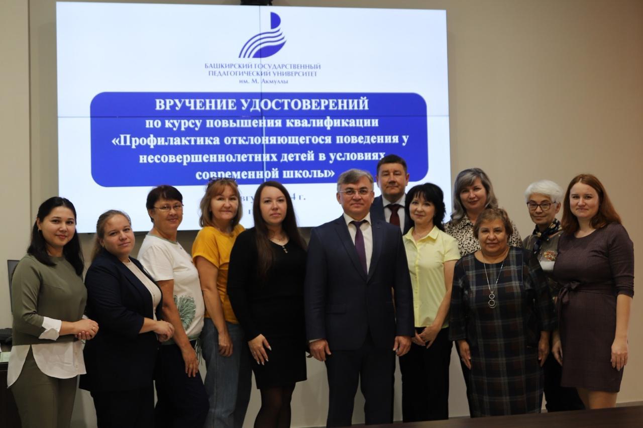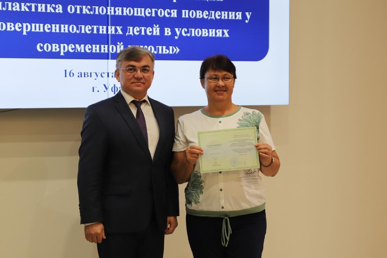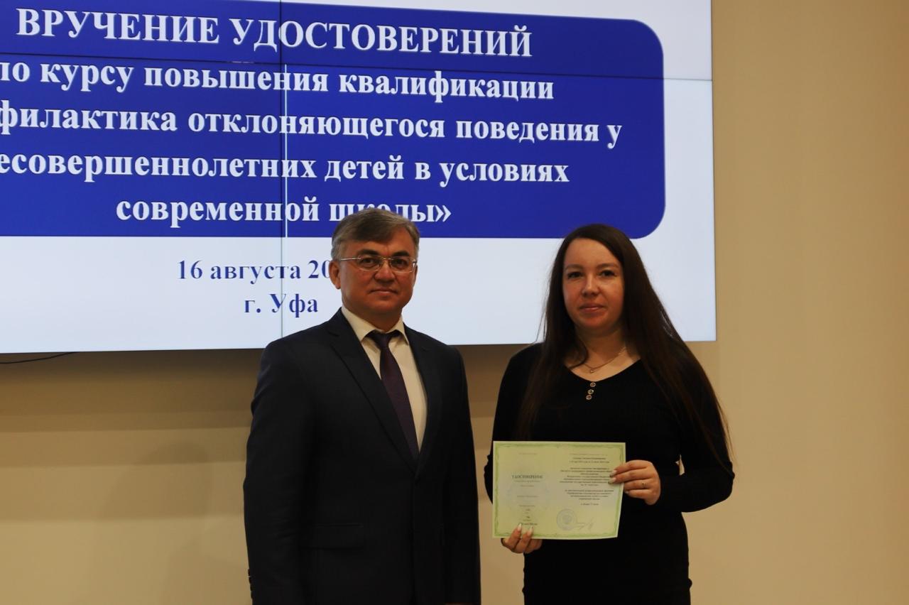 16 августа в Акмуллинском университете состоялось вручение удостоверений слушателям курса повышения квалификации «Профилактика отклоняющегося поведения у несовершеннолетних детей в условиях современной школы».