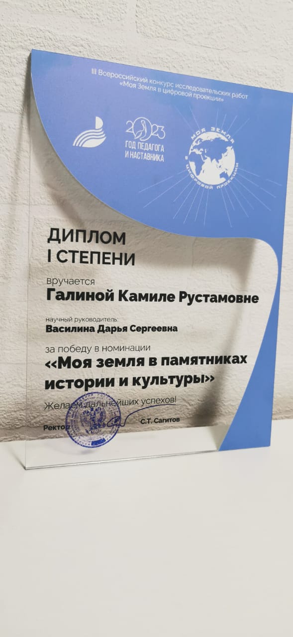 Студентка Центра развития профессиональных компетенций «Адитон» (обучающаяся 4 курса группы ПОМХЭК 41-19) Камила Галина стала дипломантом I степени в номинации «Моя земля в памятниках истории и культуры» (научный руководитель Дарья Сергеевна Василина). Проектом стало исследование «АРХИТЕКТУРА Г. УФЫ СКВОЗЬ ВРЕМЯ: ГОЛОС ПАМЯТИ».