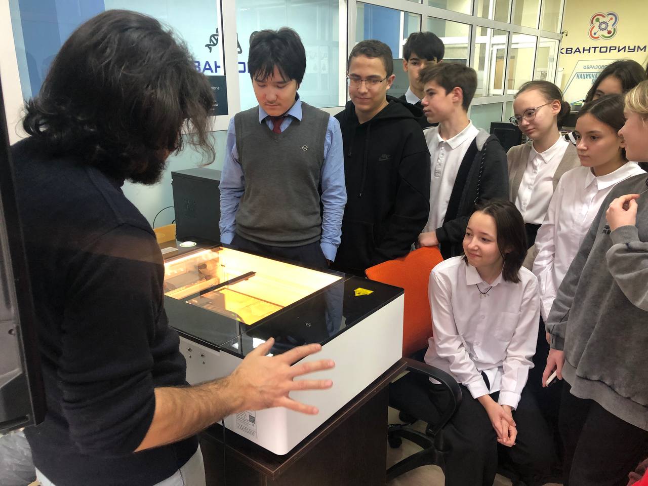 Учащиеся Школы №45 г. Уфы смогли ознакомиться с современными технологиями, в рамках деятельности кружка НКФП Цифровой завод: лазерные технологии на базе Кванториума БГПУ им. М.Акмуллы.