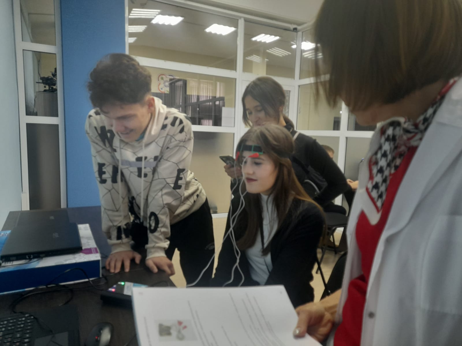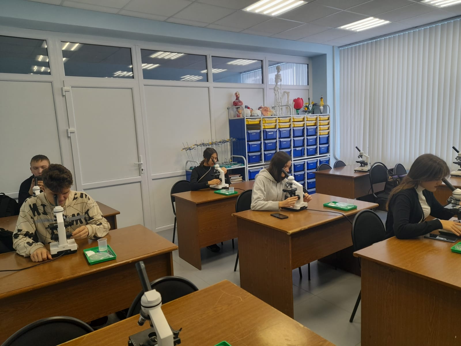 Вместе с доцентом кафедры биоэкологии и биологического образования Альфией Ильсуровной Фазлутдиновой в Педагогическом Кванториуме имени В.А. Садовничего школьники определяли температуру и влажность воздуха, освещенность помещения, измеряли рН растворов, смотрели готовые растительные и животные препараты  с помощью цифровых микроскопов. Проводили лабораторные исследования по нейрофизиологии: снимали ЭКГ, электроэнцефрлограмму, измеряли пульс, силу сокращения мышц, определяли артериальное давление. В 607 аудитории учащиеся работали со световым в микроскопом, готовили  временные препараты из суспензий микроскопических водорослей. В завершении школьники посетили Технопарк универсальных педегогических компетенций и познакомились с работой анатомического стола Пирогова.