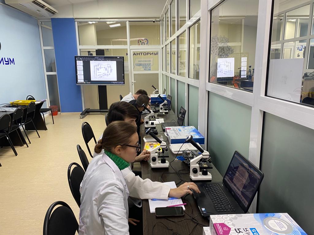 Студенты 2 курса  направления "Биология" профиль "Биоэкология" продолжают изучать биоразнобразие, строение и систематику растений и грибов на постоянных препаратах с использованием световых микроскопов учебно-лабораторного комплекса "Биология" на базе Педагогического технопарка "Кванториум" им. В.А.Садовничего.