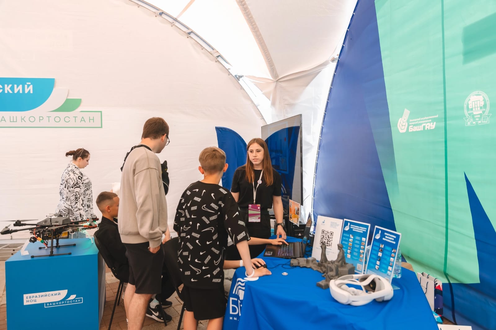 В парке «Ватан» работала площадка Евразийского НОЦ, где Акмуллинский университет представил для уфимцев и гостей столицы различные активности.