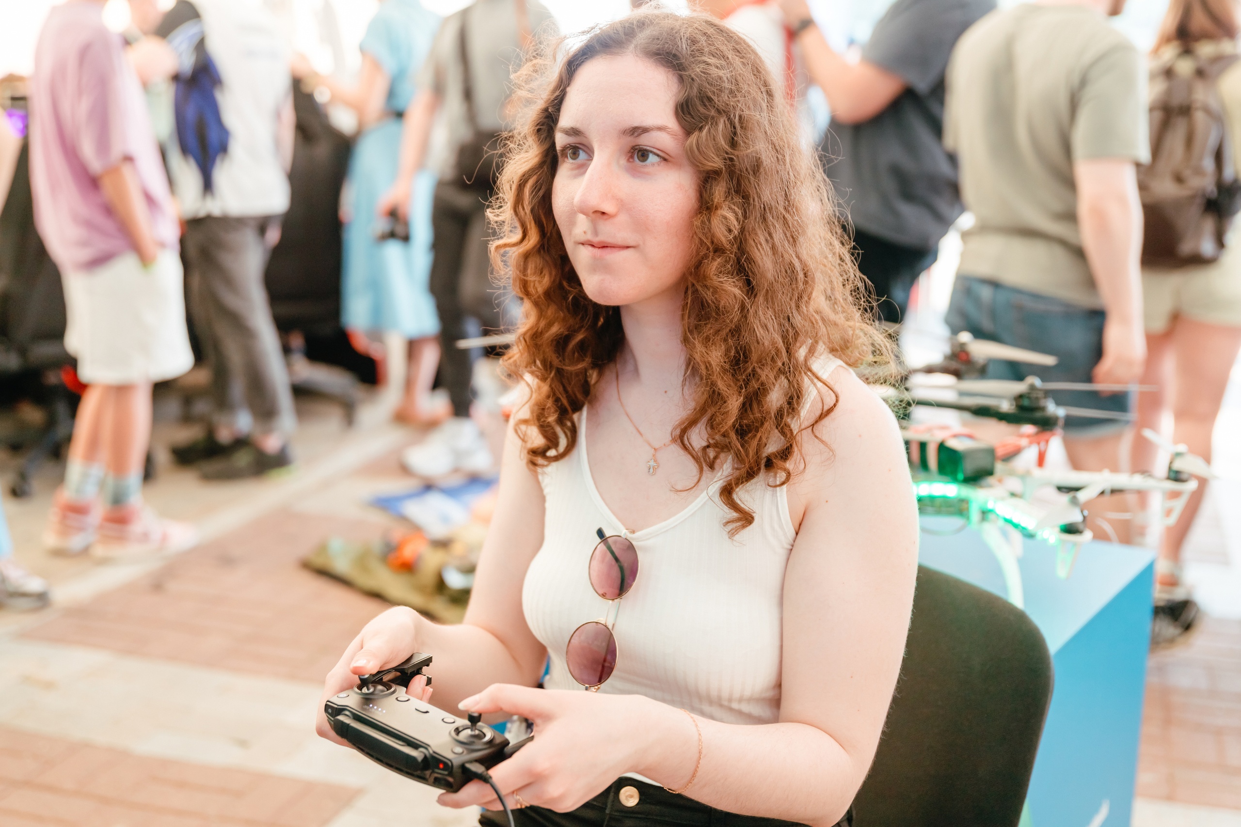 «Мы демонстрируем оборудование, которым оснащен наш Кванториум имени В.А. Садовничего. Здесь представлены управляемые и программируемые роботы, которыми посетители могут попробовать управлять. Еще есть программа-симулятор управления дроном, которая была создана специально для обучения пилотов. И любой желающий может с ней поработать», – отметил студент 3 курса ИФМЦН Дмитрий Белокуров.