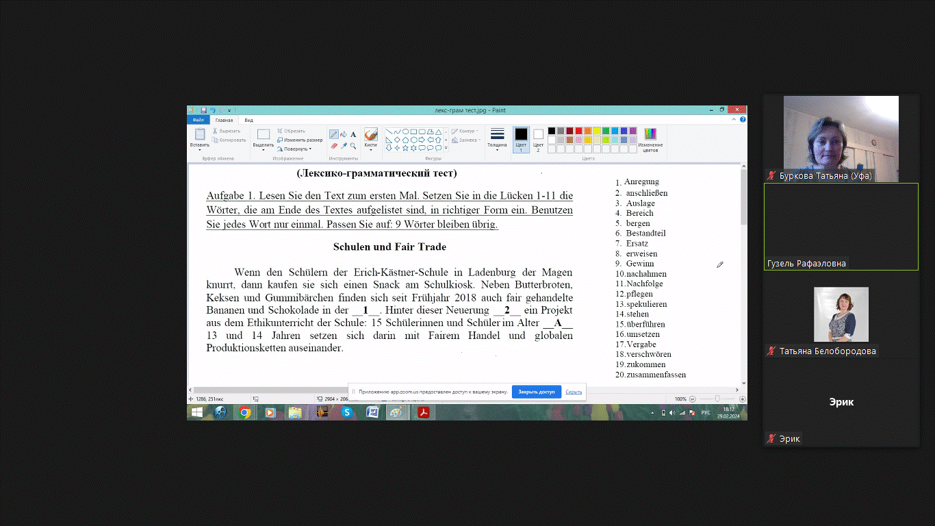 В рамках работы с профильными психолого-педагогическими классами доцент Галиева Г.Р. провела онлайн-занятие, на котором были проанализированы особенности одного из самых сложных заданий Всероссийской олимпиады школьников по немецкому языку – лексико-грамматического теста. С обучающимися были обсуждены стратегии выполнения данного задания, рассмотрены конкретные примеры, а также даны рекомендации по повторению определенных грамматических тем.