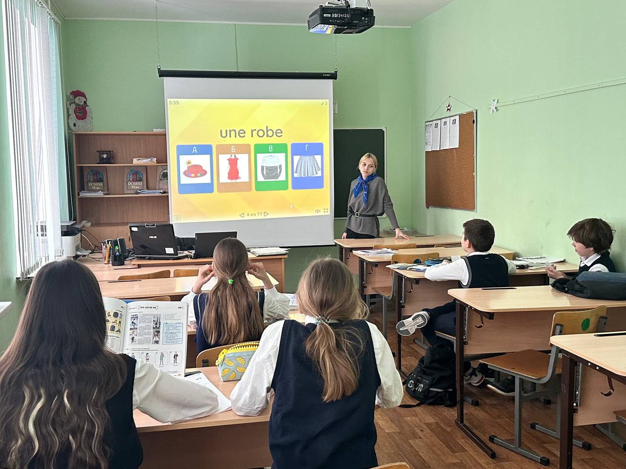 Первая неделя была дана нам на ознакомление с гимназией, классами, учителем. Мы посещали уроки, делали заметки. Со второй недели мы сами начали вести уроки в классах, которые были закреплены за нами! Очень интересно составлять планы, особенно для французского языка.