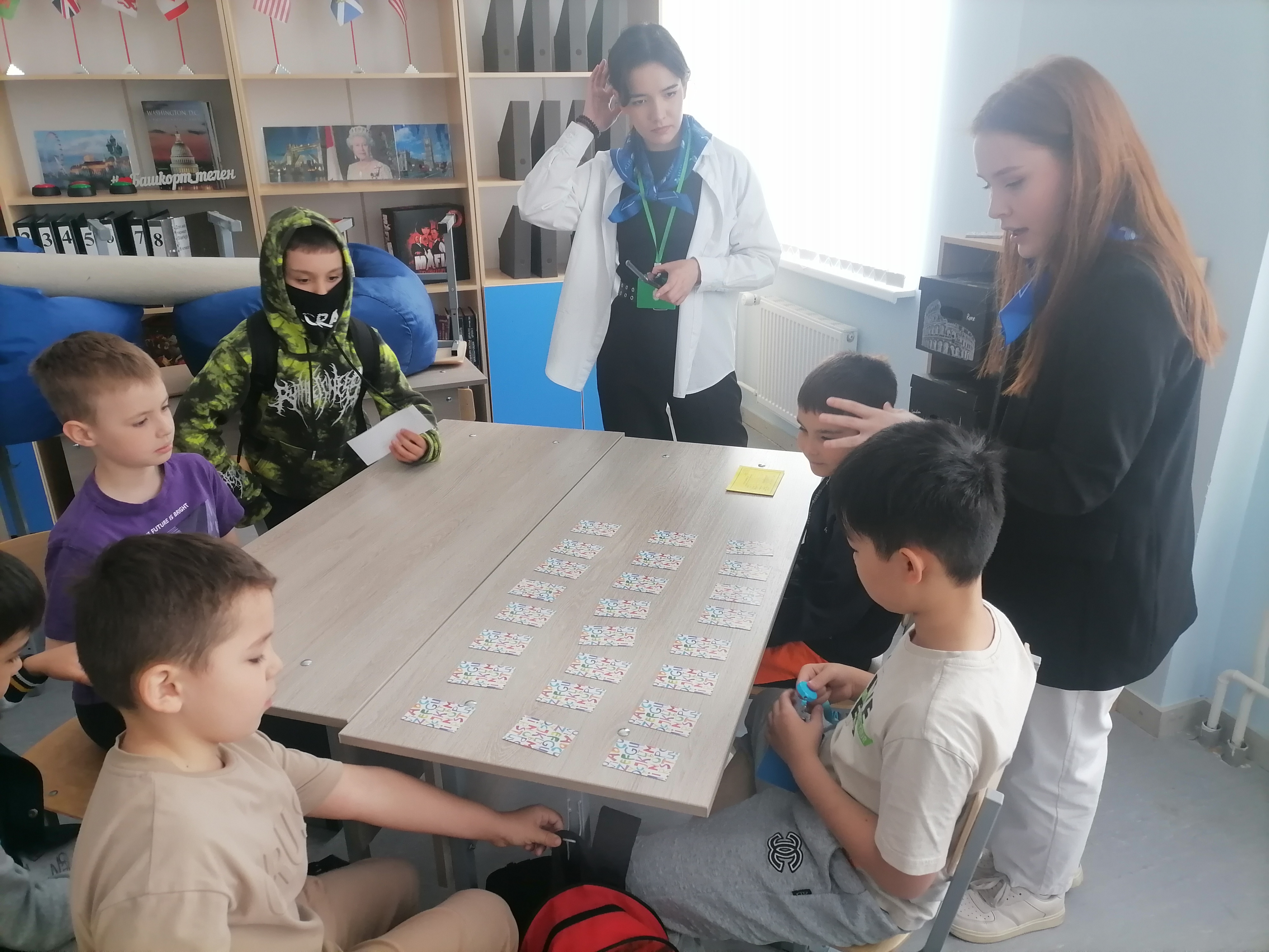 Студенты ПОРЯЛ-21-22 Аделина Сагадеева и Гимазетдинова Ляйсан сыграли с детьми в популярную игру Мемори на английском языке.