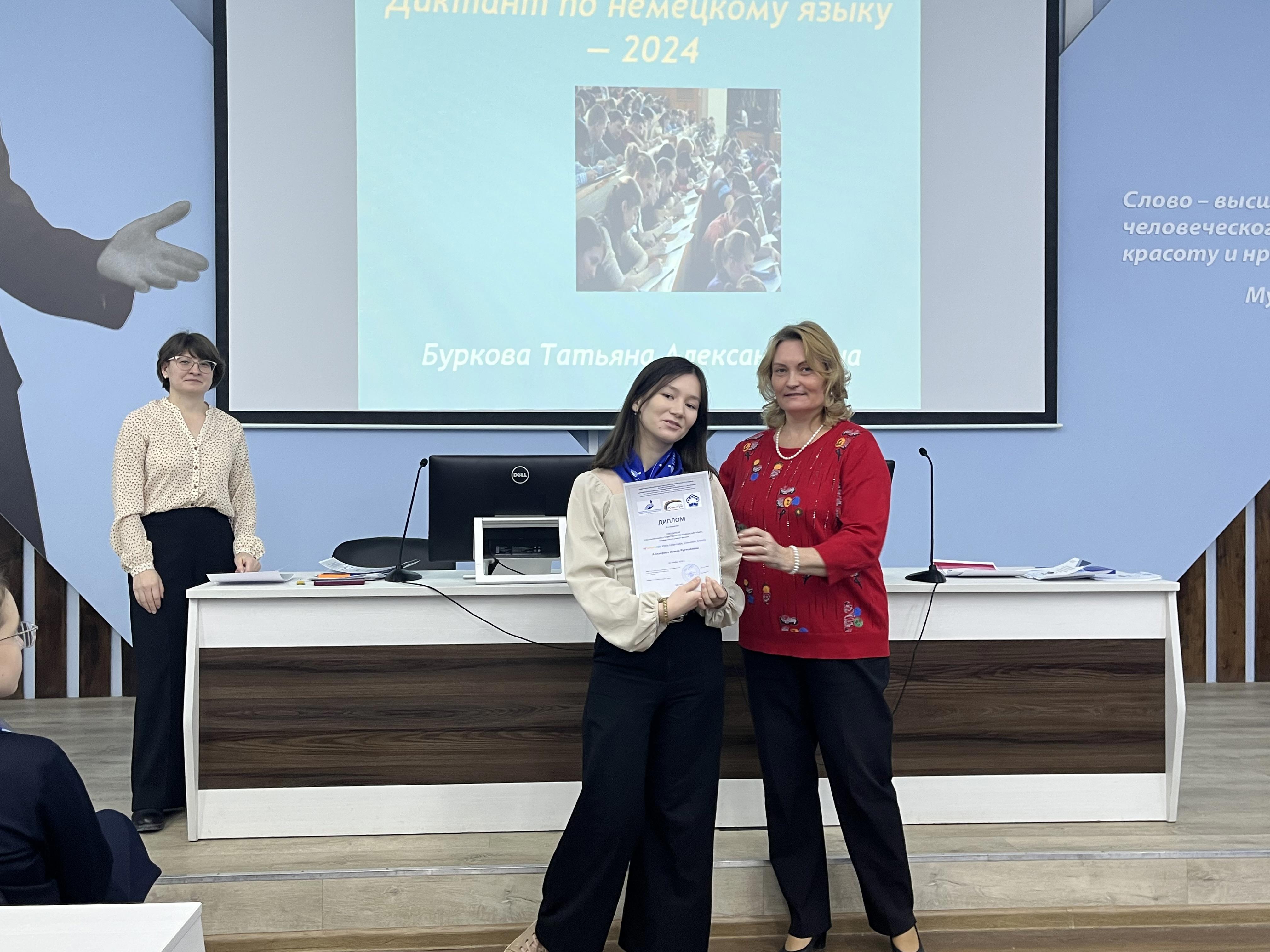 Диплом знатока немецкого языка за многолетнее участие в Республиканском диктанте по немецкому языку получила Каримова Римма Хатиповна.