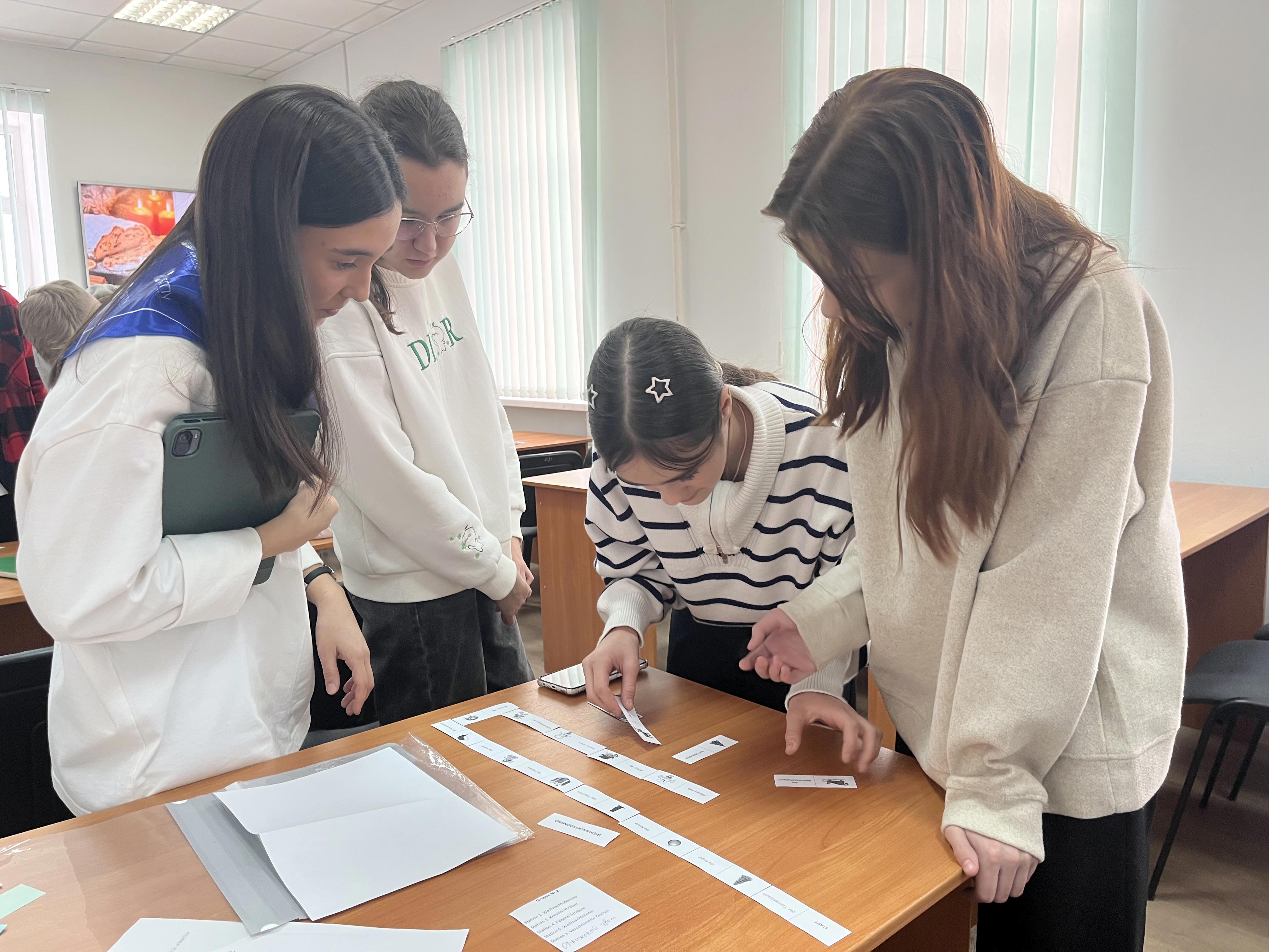 Участников мероприятия ожидала насыщенная программа, включающая пленарные доклады, разнообразные мастер-классы, посвященные традициям празднования немецкого Рождества. В пленарной части школьники познакомились с историей Дедов Морозов в Германии и в России (студенты 4 курса ИФОМК: Оганесян Гаяне, Аллаярова Алина). Широкая палитра мастер-классов для 5-6, 7-8 классов позволила ребятам расширить горизонты знания немецкого языка и культуры (Г.Р. Галиева – методический руководитель; студенты 5 курса ИФОМК). Старшеклассники смогли посетить занятия по подготовке к страноведческому тесту Всероссийской олимпиады школьников по немецкому языку (Т.А. Акбердина, Э.А. Гареева – руководители мастер-классов для 9-11 классов).