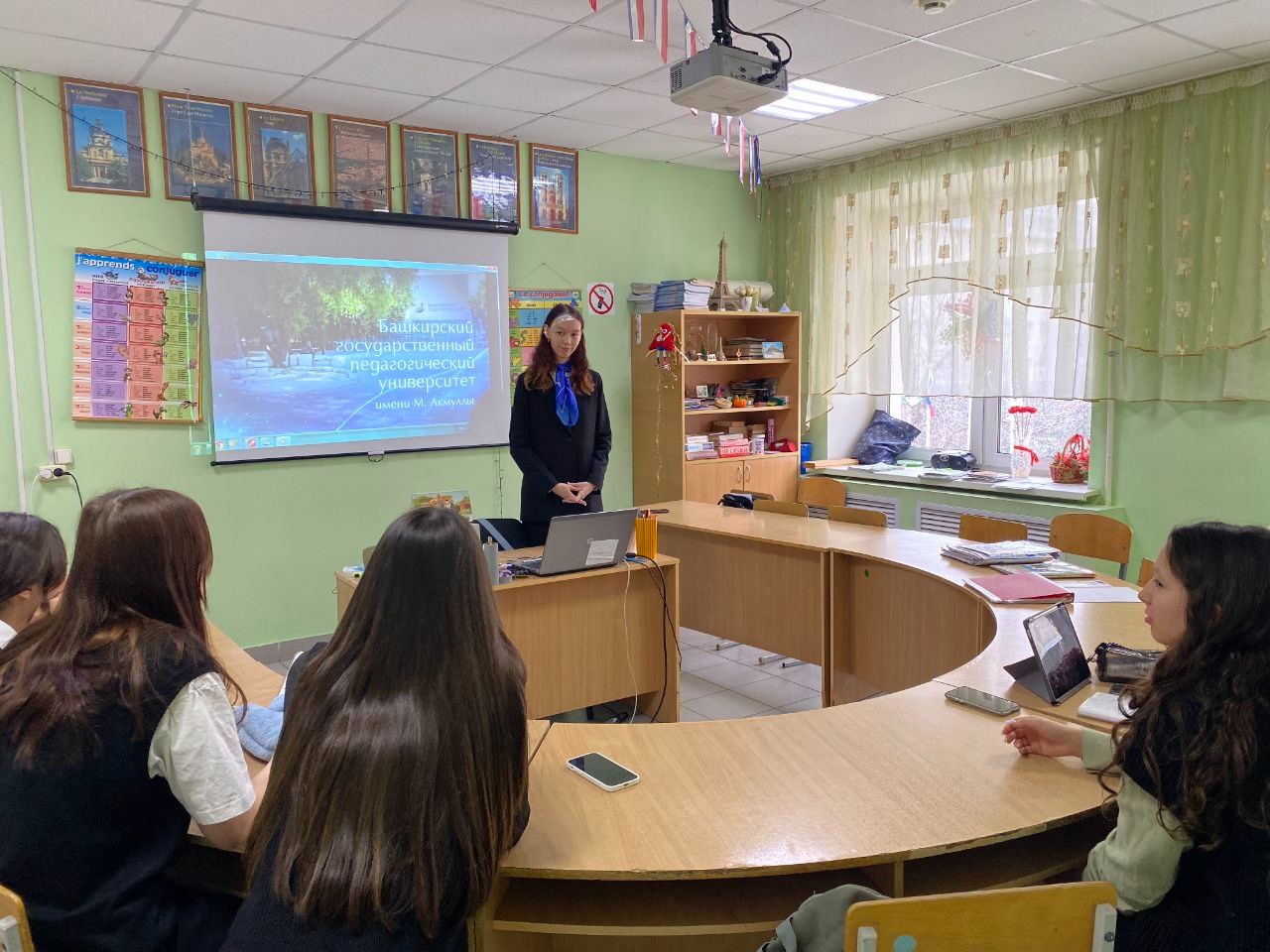 В рамках педагогической практики по французскому языку студенты 5 курса ИФОМК Юнусова Алия и Сагитова Руфина провели профориентационное мероприятие «Мой путь к профессии» для обучающихся 10 класса гимназии №39 им. А.Ш. Файзуллина. Целью мероприятия было помочь старшеклассникам определиться с выбором будущей профессии и познакомить с педагогическим университетом.