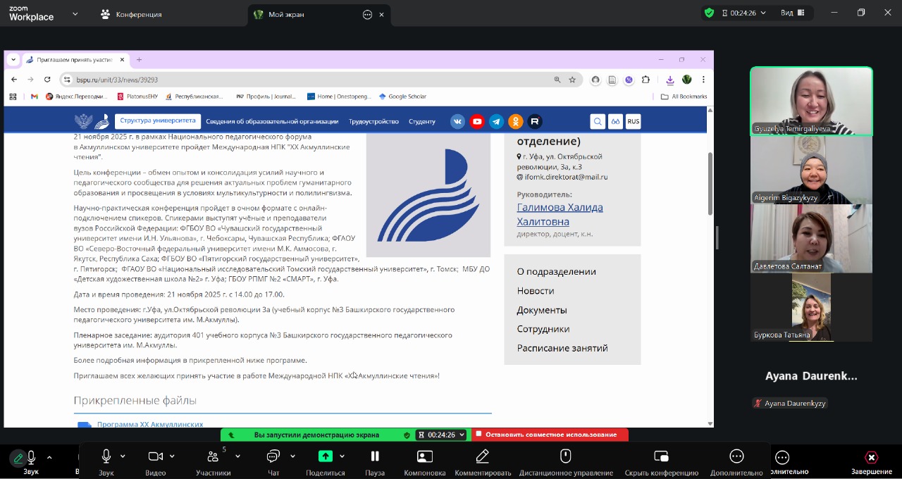 Аспиранты ЕНУ им. Л.Н. Гумилева прошли стажировку на кафедре романо-германской филологии и методики обучения иностранным языкам БГПУ им.М.Акмуллы